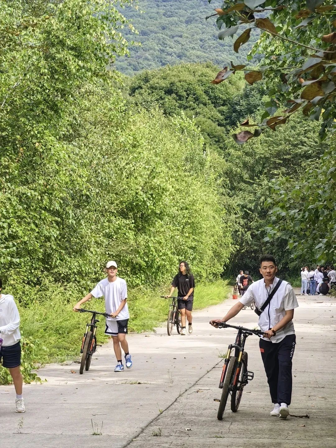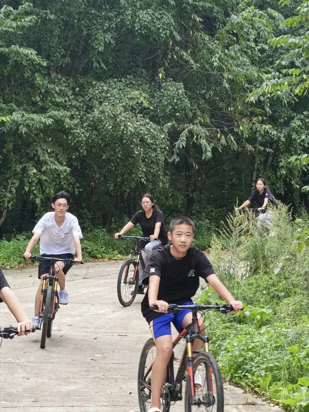 每一个清晨,当温暖而灿烂的阳光倾洒下来时,同学们就会骑着山地自行车自由自在地穿梭在那郁郁葱葱的山林之间,齐心协力地一起去挑战各种充满趣味的独特赛道,从那蜿蜒曲折如同丝带般的林道到那险峻陡峭令人心跳加速的山坡,每一次全力以赴的冲刺和艰难但充满成就感的攀爬,都伴随着阵阵抑制不住的欢笑与激动到近乎尖叫的呼喊声。