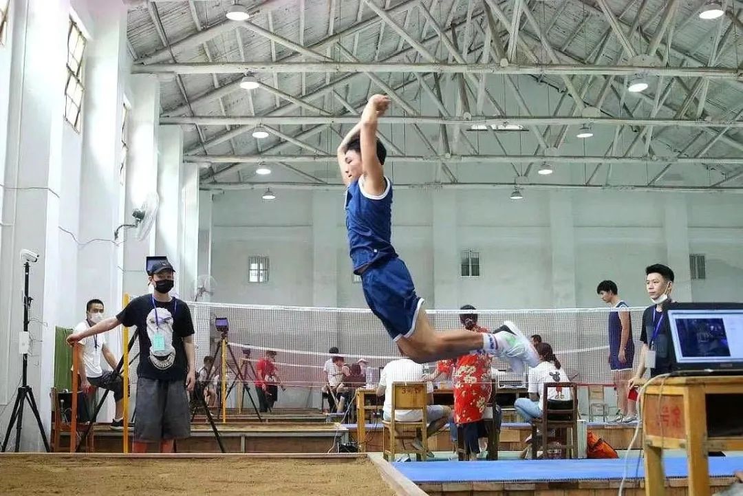 5、成绩丈量:运动员的成绩以第二次跳跃身体任何部位触及的最远点来计算。