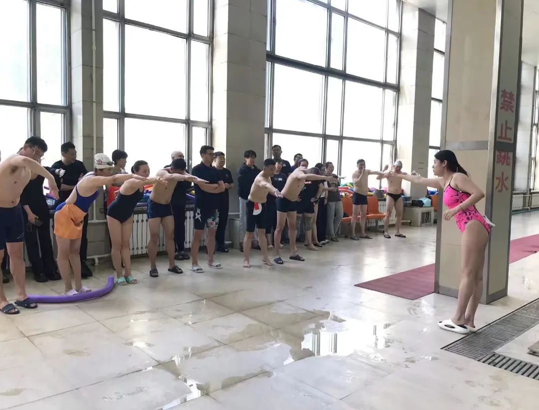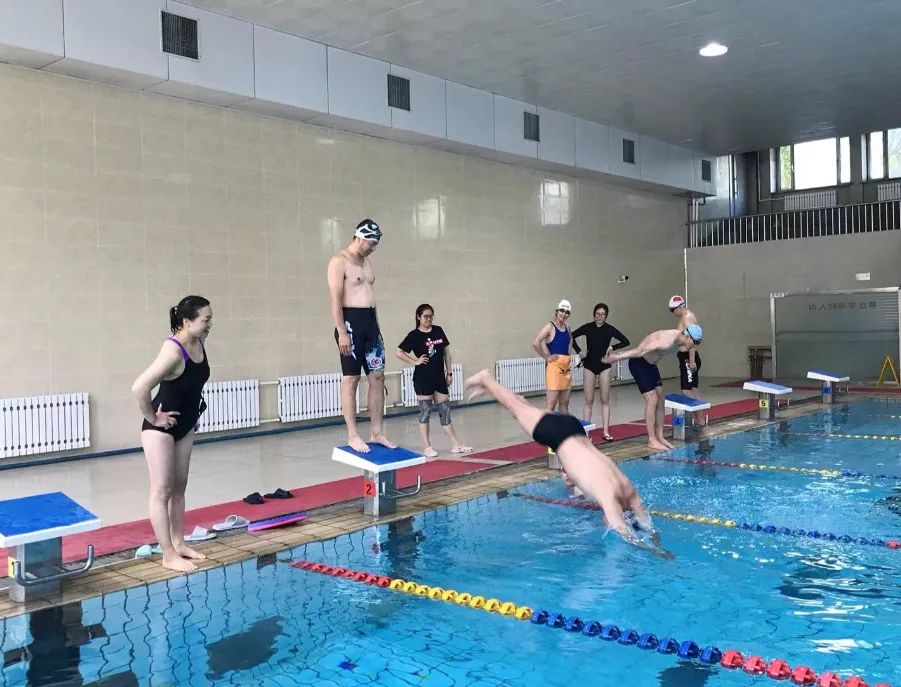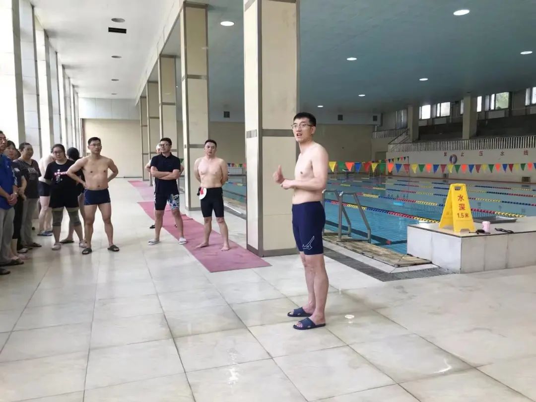 水冰田径教研室教师李禹欣从游泳运动的好处引入,对蛙泳、自由泳的基础动作、下水前的准备活动、游泳中的呼吸调节、手臂的划水动作、腿部的打水动作、跳发及转身动作等进行了全面深入、生动细致的讲解和展示。随后,全体教师分层次进行了实际操作和交流展示。活动中,全体教师还进行了溺水事故处理等水安全教育展示。褚宇鹍老师详细讲解了岸上解脱、现场赴救、心肺复苏等知识,并进行了现场演练。通过模拟溺水事件,进一步规范了教师的水中赴救以及心肺复苏操作。活动过程中,全体教师专业且投入,将学生的运动安全放在心中,积极交流,认真钻研每一项技术,规范每一个动作,力求达到最佳的教学效果。
