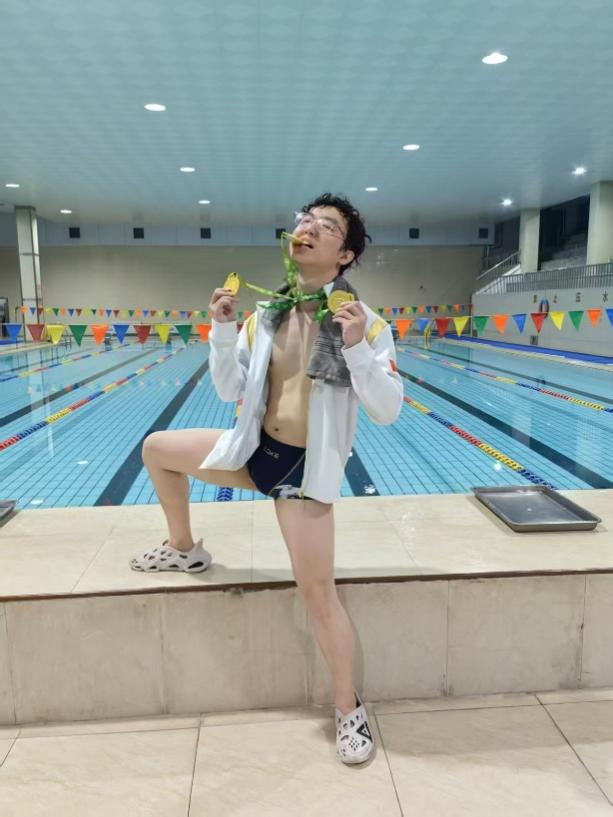 泳队的一员,泳池里的“痛苦面具”佩戴者兼蝶泳狂热爱好者!没错,他的主项就是那个让人又爱又恨、号称“水中暴君”的蝶泳!站在大运会的舞台上,不只是代表自己,更是代表学校和所有支持他的人。他会像主项一样,全力以赴,充满力量与美感地冲击终点!期待在泳池里‘蝶’出一片天地,我们赛场见!