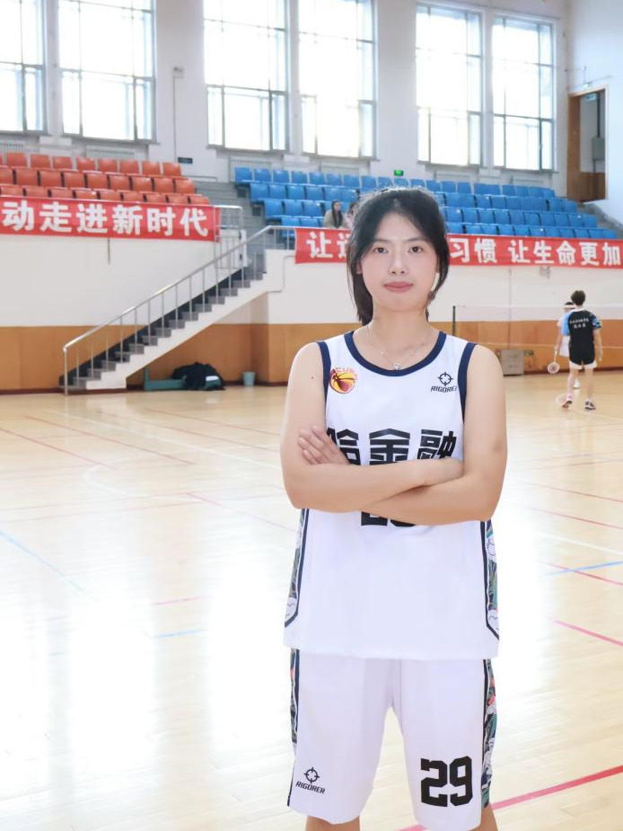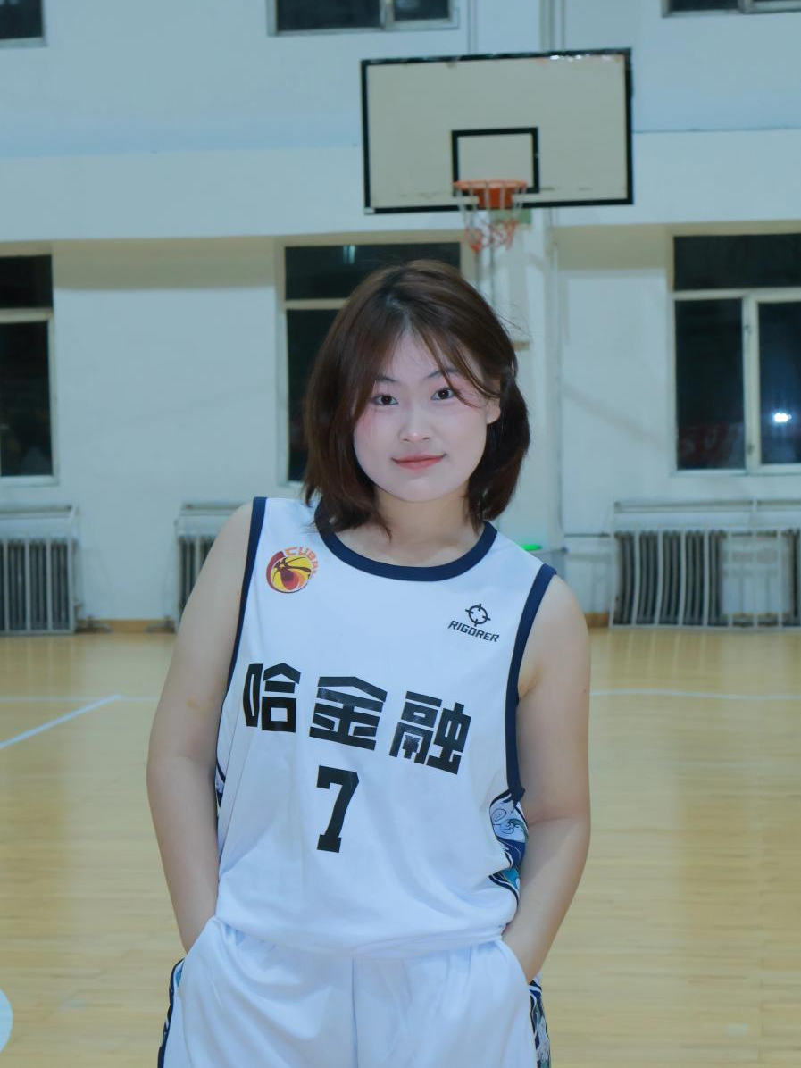 刘明玉,23级会计学院,球服号码22号,身高1米87,是女篮中锋,在内线攻防两端发挥关键作用。她凭借脚步移动与背身单打,撕开对手防线并完成得分;凭借篮板意识和身高优势,掌控禁区制空权,多次完成精彩的二次进攻。她热爱篮球,更享受与队友并肩作战的感觉,期待在赛场上用实力为球队贡献力量,用内线统治力点燃比赛激情!