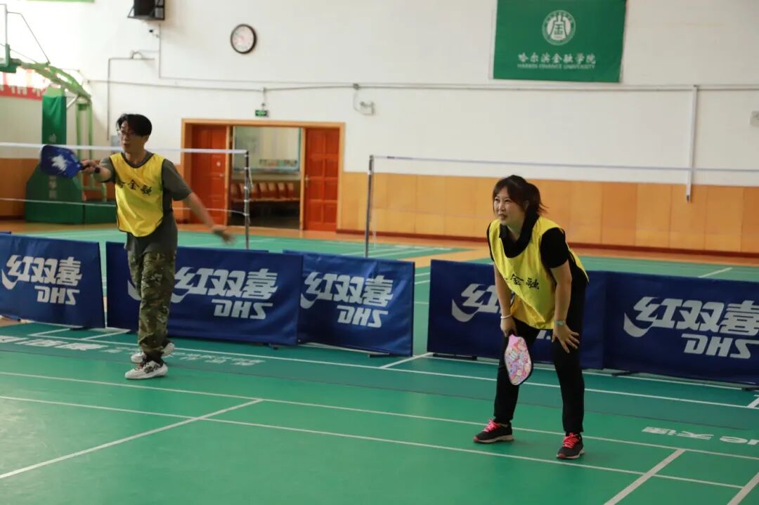 赛场上,教师们化身“学员”与“运动员”,从好奇摸索到熟练挥拍,从理解规则到策略运用,充分感受了该项运动的独特乐趣与锻炼价值。现场气氛热烈,精彩回合不断,充分展现了金院体育教师队伍蓬勃的活力、强大的学习能力和团结进取的精神风貌。