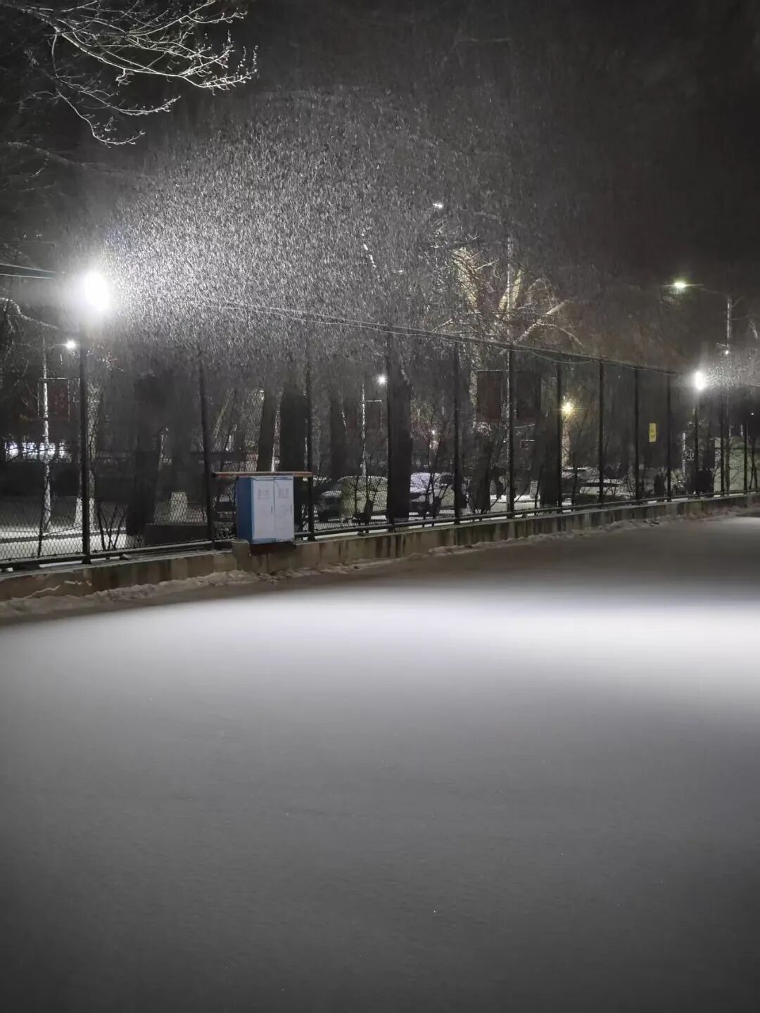 基础稳固后,便进入全面浇灌阶段。此时水温需严格控制,避免因温差过大导致冰层开裂。筹备者驾驶浇冰车,以匀速行驶的方式进行大面积浇灌,让水流在底层冰面上形成均匀的新冰层;对于边角、弯道等特殊区域,则采用人工补浇的方式,确保无死角、无漏洞。一次次浇灌、一遍遍打磨,原本粗糙的冰面逐渐变得晶莹剔透、光滑如镜,只为给同学们打造一方尽情驰骋的冰上舞台。
