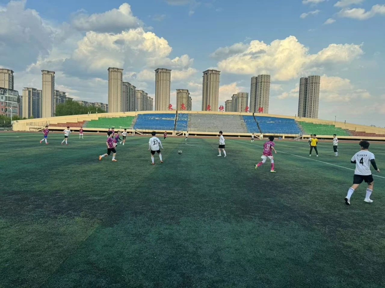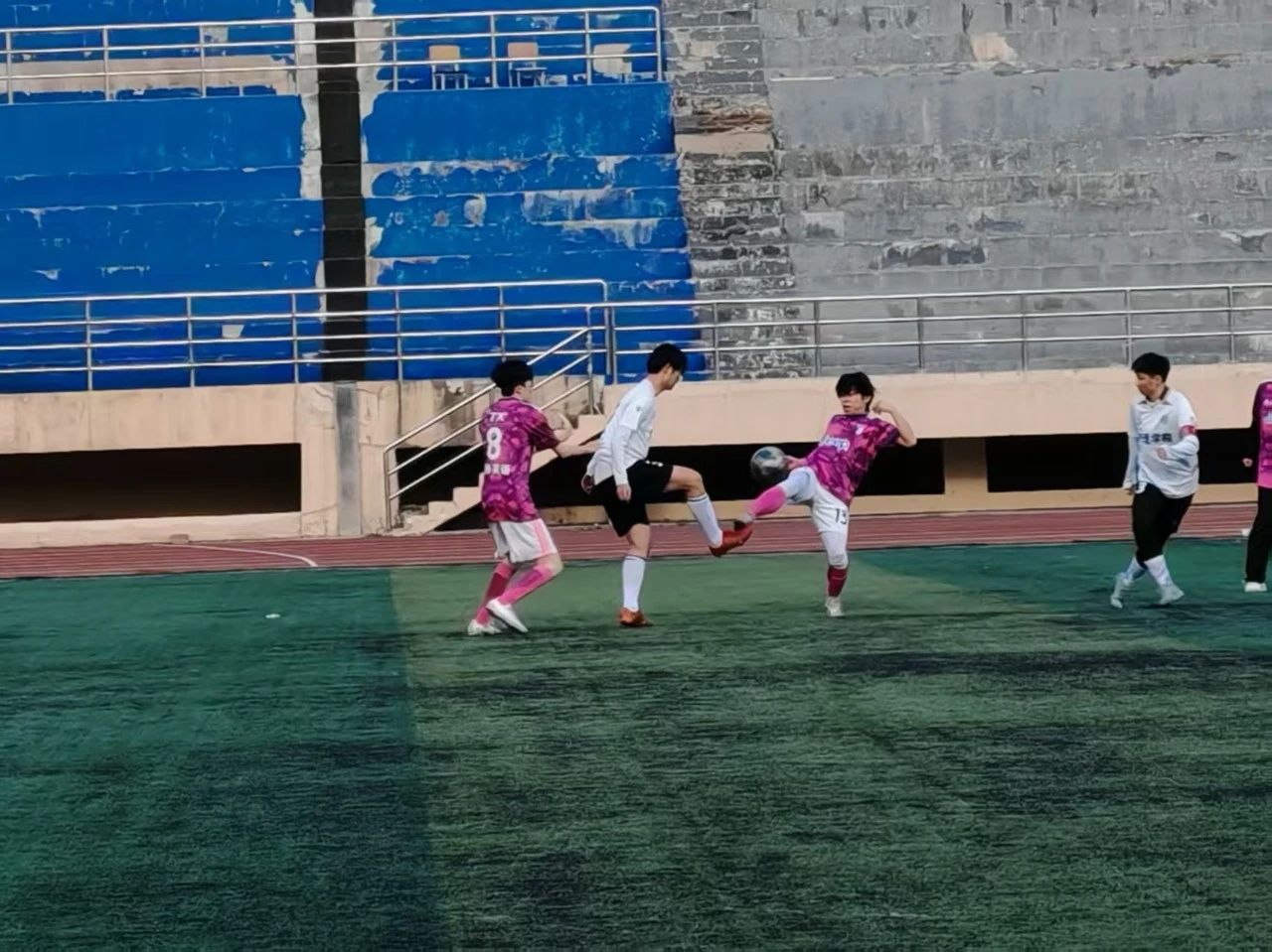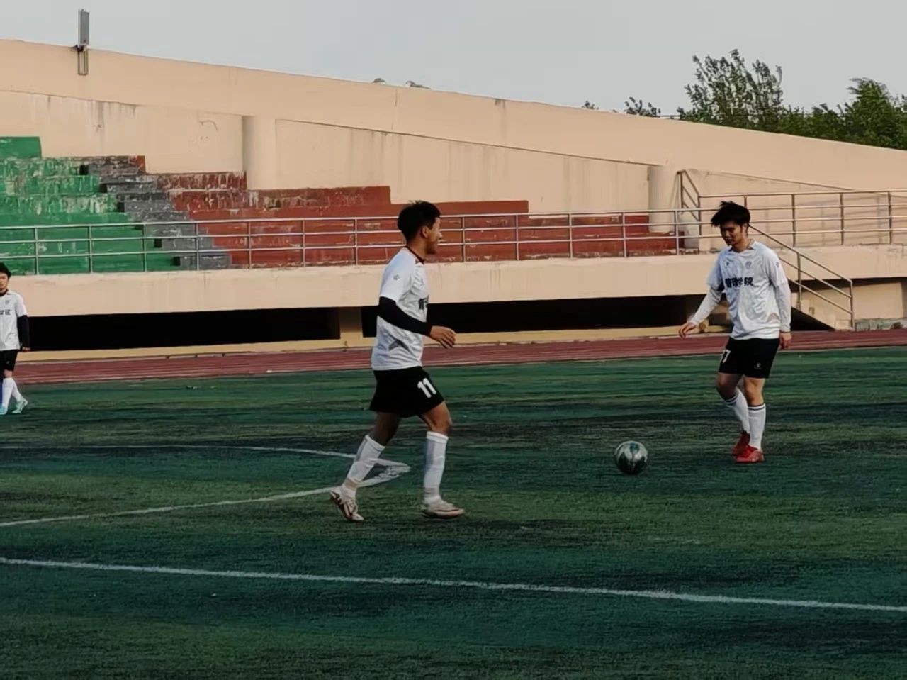 今日下午,绿茵场上硝烟四起,管理学院足球队与商务英语学院足球队展开激烈对决。管理学院凭借凌厉的进攻早早确立优势,最终以 3:1 击败对手。