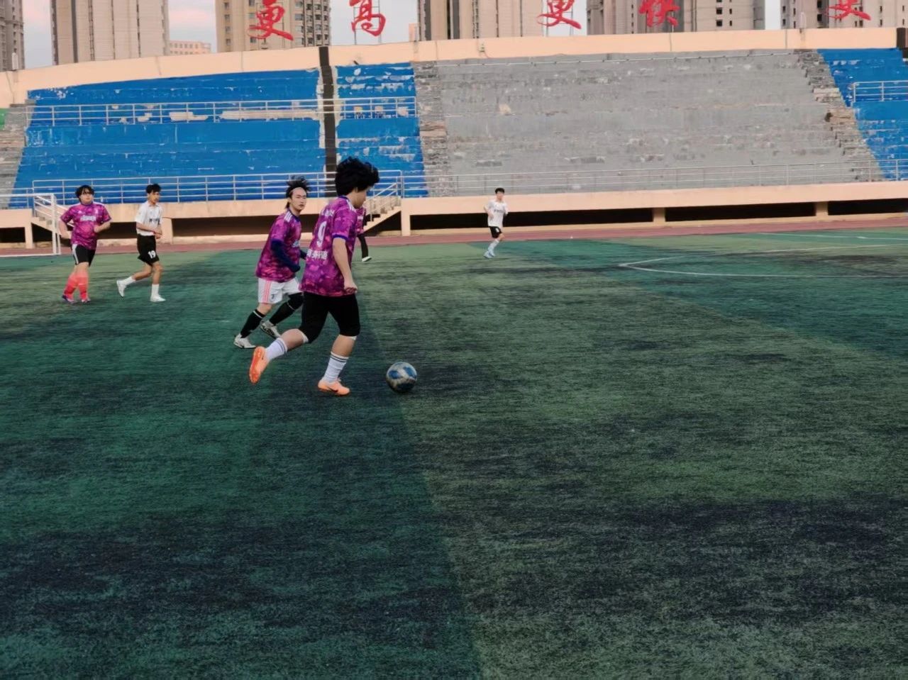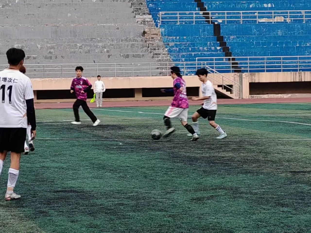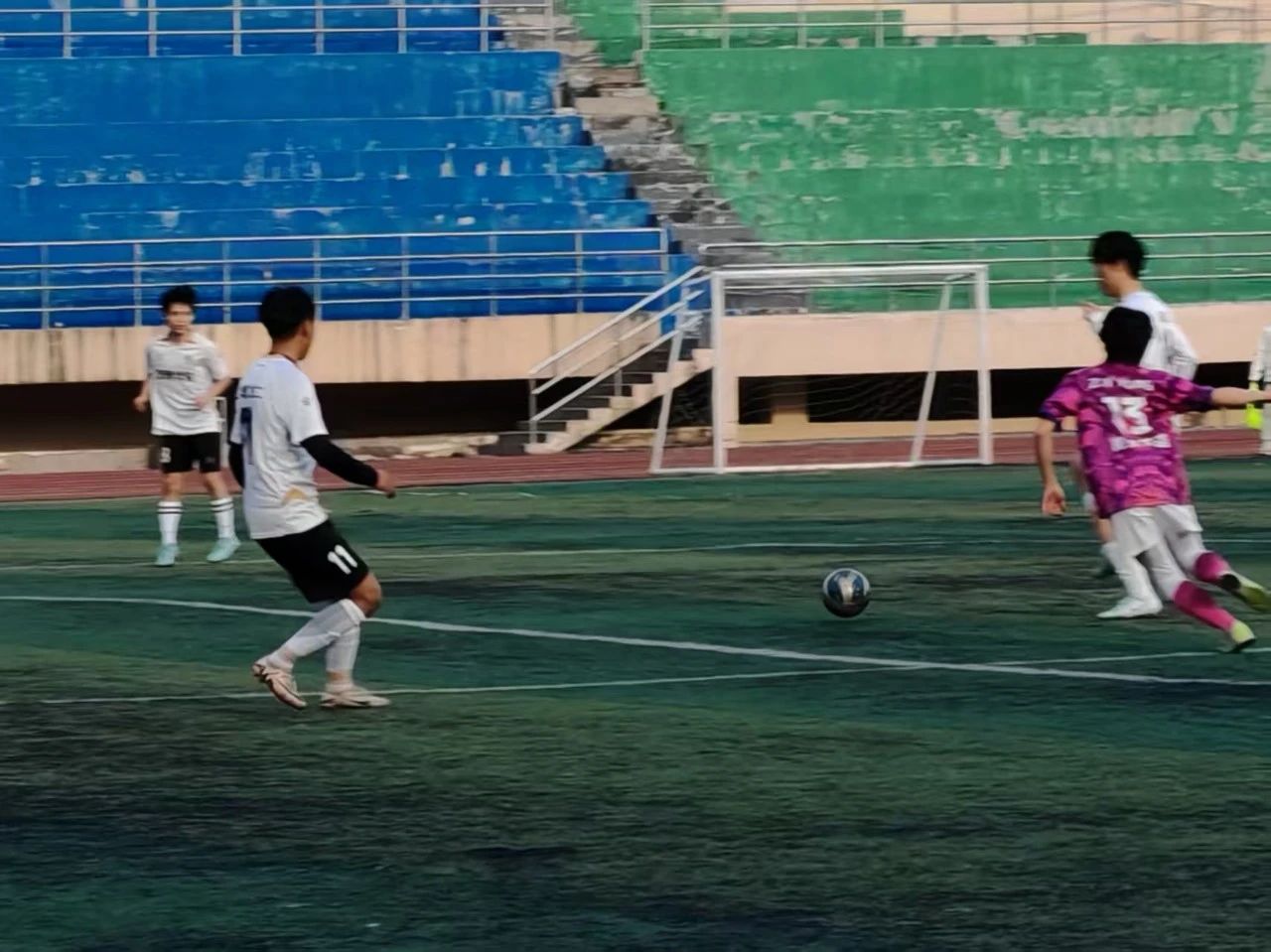 下半场,管理学院攻势不减。第 55分钟,管理学院利用个人能力突破防守,小角度抽射得手,3:0!比赛似乎失去悬念。然而,商务英语学院并未放弃,他们在终场前 第88分钟由阿力木斯抓住机会,一脚劲射扳回一球,3:1!尽管未能逆转,但这一进球展现了他们的顽强斗志。