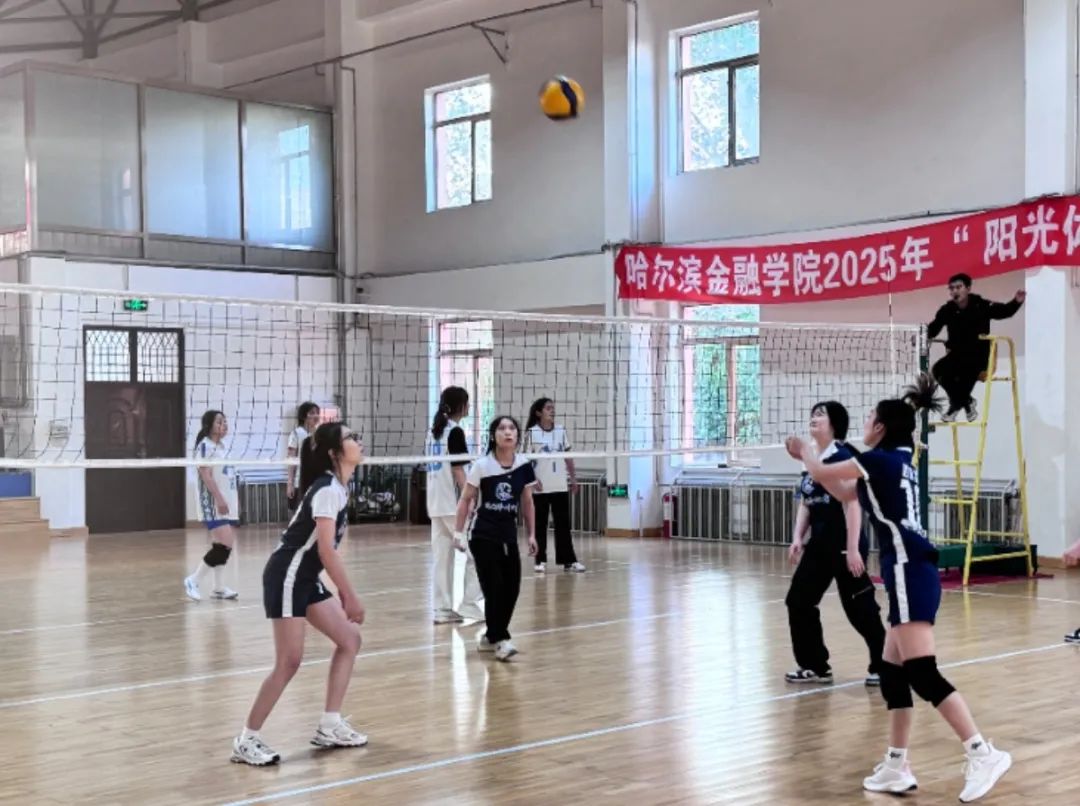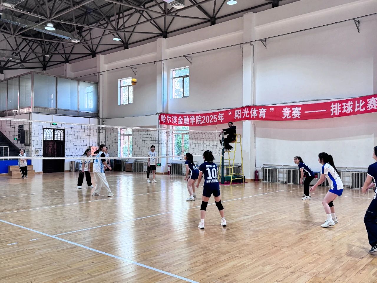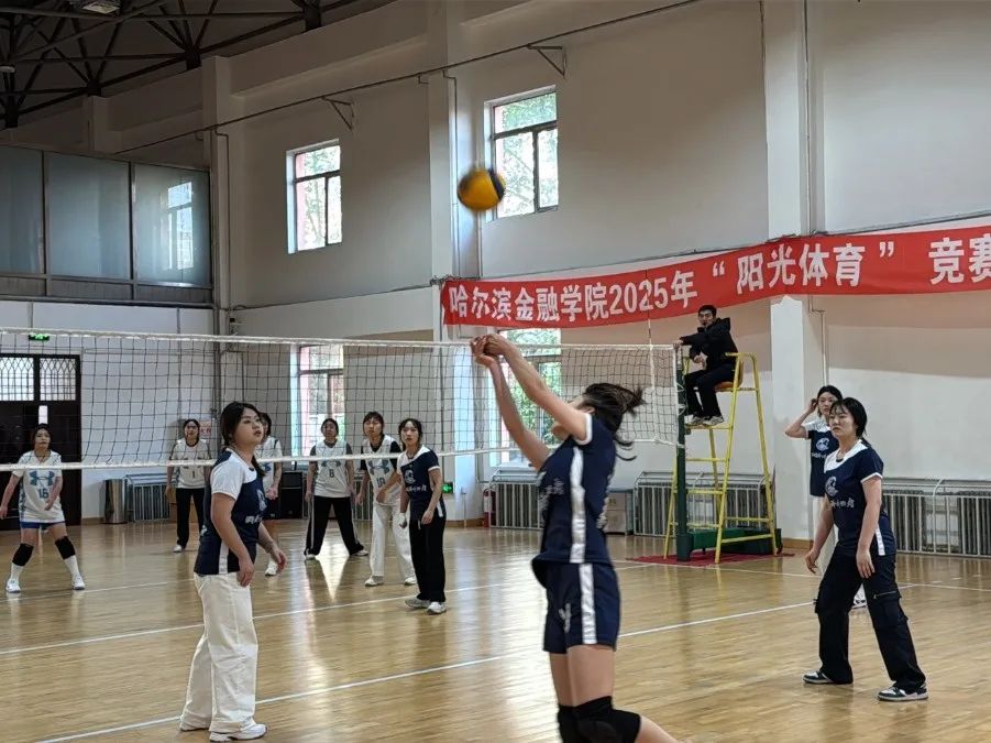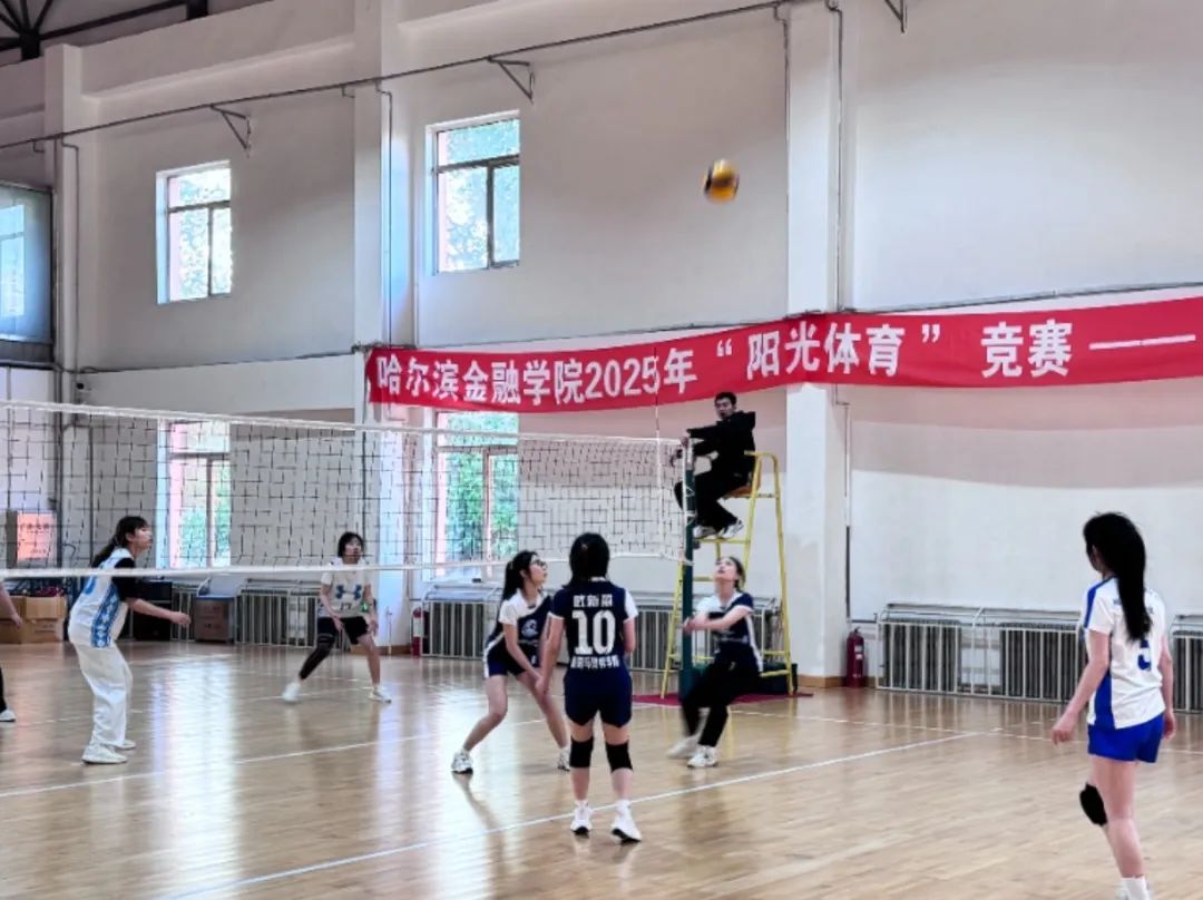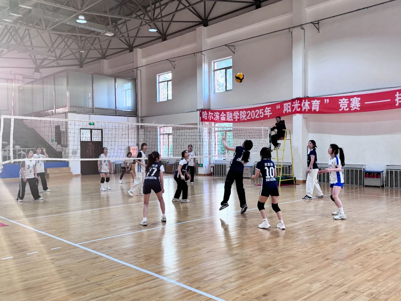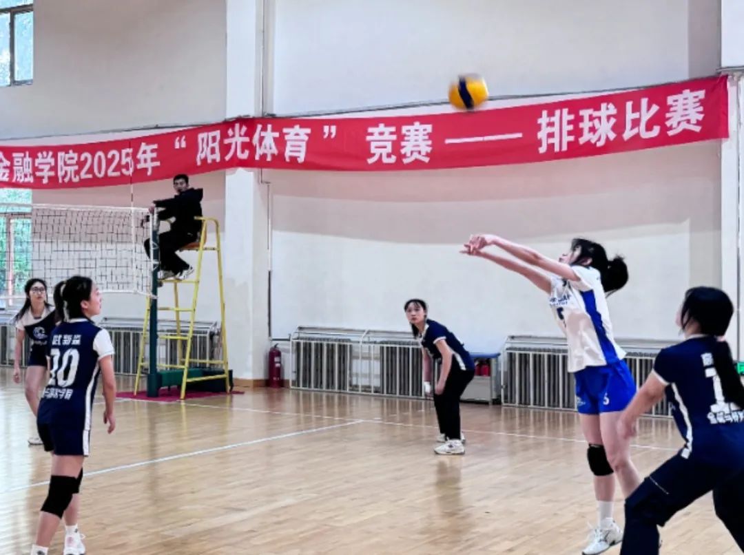 首局,双方球员迅速进入状态,展开了激烈的争夺。发球权在金融手中,他们的发球手精准地将球发向对方场地,商英的接球手稳稳地将球垫起,迅速传给主攻手高高跃起,一记势大力沉的扣杀,直接得分!金融也不甘示弱,加强了防守,并组织起有效的反击。商英队员们凭借着出色的配合和顽强的毅力,连续得分,最终拿下第一局胜利。