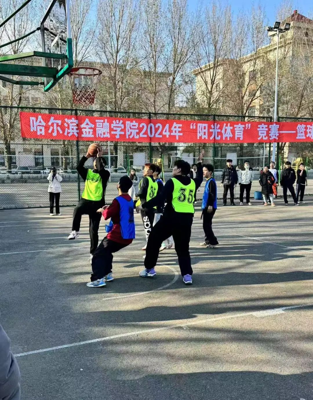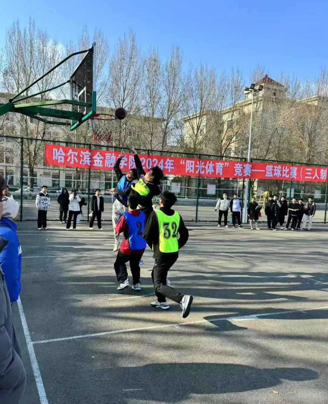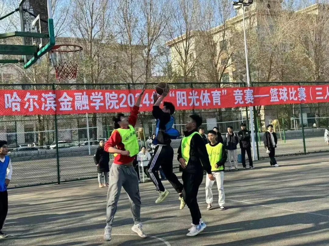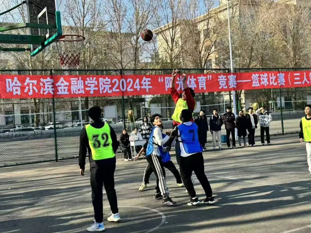 金秋送爽,篮影飞扬。篮球,这项充满激情与汗水的运动,正逐渐成为大学生心中的热爱,它不仅点燃了青春的火焰,更彰显了团队合作与个人技艺的完美结合。为搭建一个促进交流、提升技能的舞台,同时展现哈金院学子如旭日东升、不畏挑战、勇往直前的竞技风貌,阳光体育竞赛—篮球3v3比赛于2024年10月23日在篮球场内激情上演,并最终画上了圆满的句号。