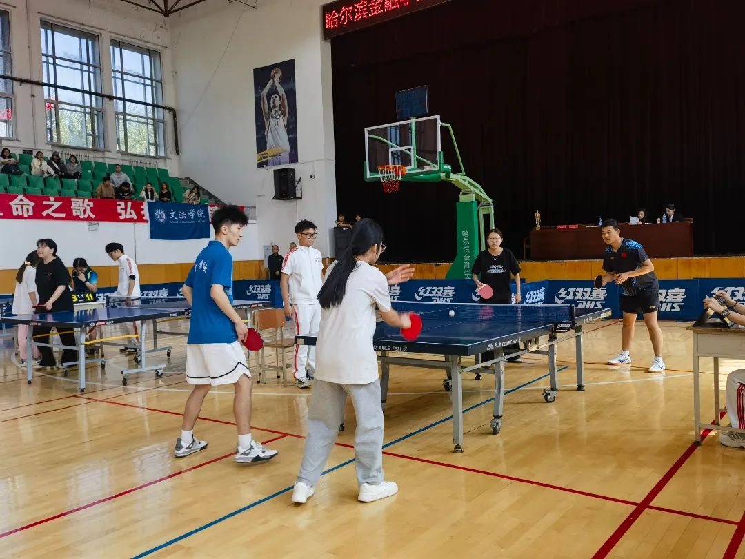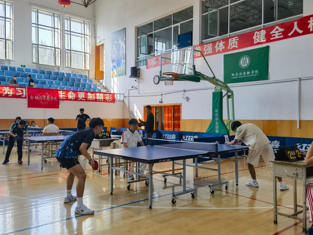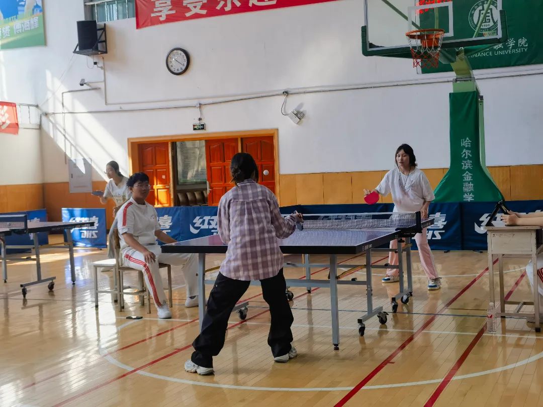 金秋送爽,丹桂飘香,九州佳景,祖国长青。为激发大学生对乒乓球运动的热爱,提升竞技技能与体能素质,培养其坚韧不拔的意志品质,展现金院学子们积极向上的精神风貌和团结拼搏的竞技精神。2024年9月28日中午12:30,哈尔滨金融学院2024年“阳光体育”竞赛——乒乓球比赛决赛在第二体育馆圆满落幕。体育教研部刘森教授、群体竞赛与体质测试中心主任常孝国、校乒乓球队教练员陈洪坐莅临比赛现场。