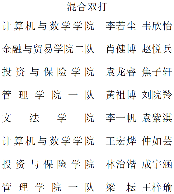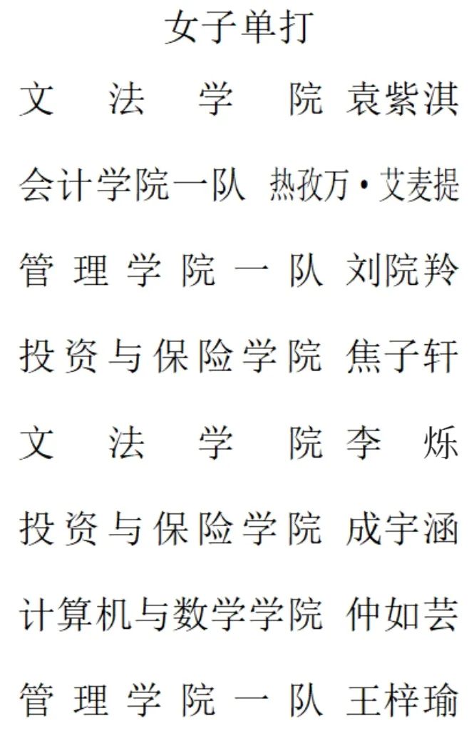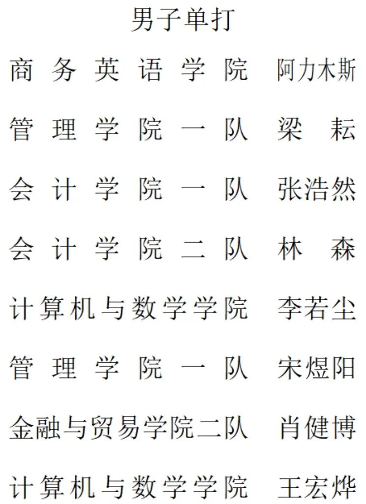 各单项比赛八强