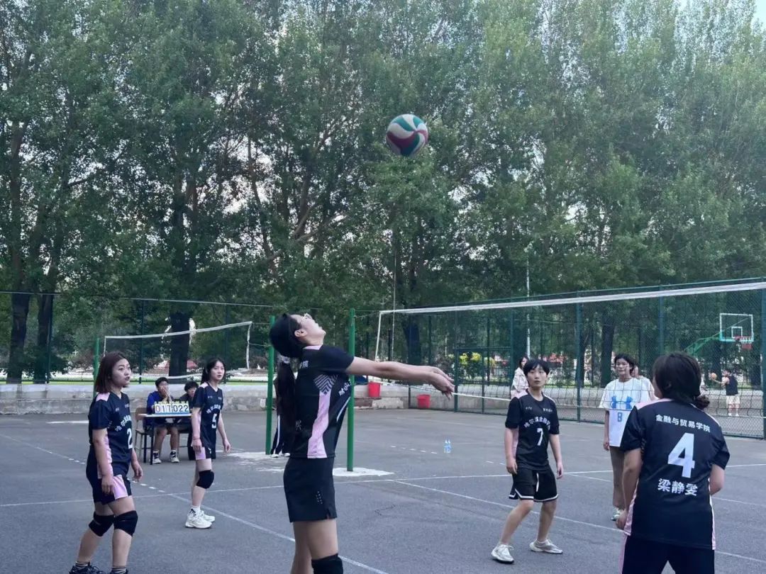第一局比赛开始,由金融与贸易学院一队首先发球,女队的发球极为凶猛,商务英语学院在前期接球方面表现不佳,使得金融与贸易学院一队持续得分。此时比分来到了8:2,然而金融与贸易学院一队发球出现失误,商务英语学院的队员们趁此机会开始不断追分,最终成功追平比分并赢下了第一局比赛。