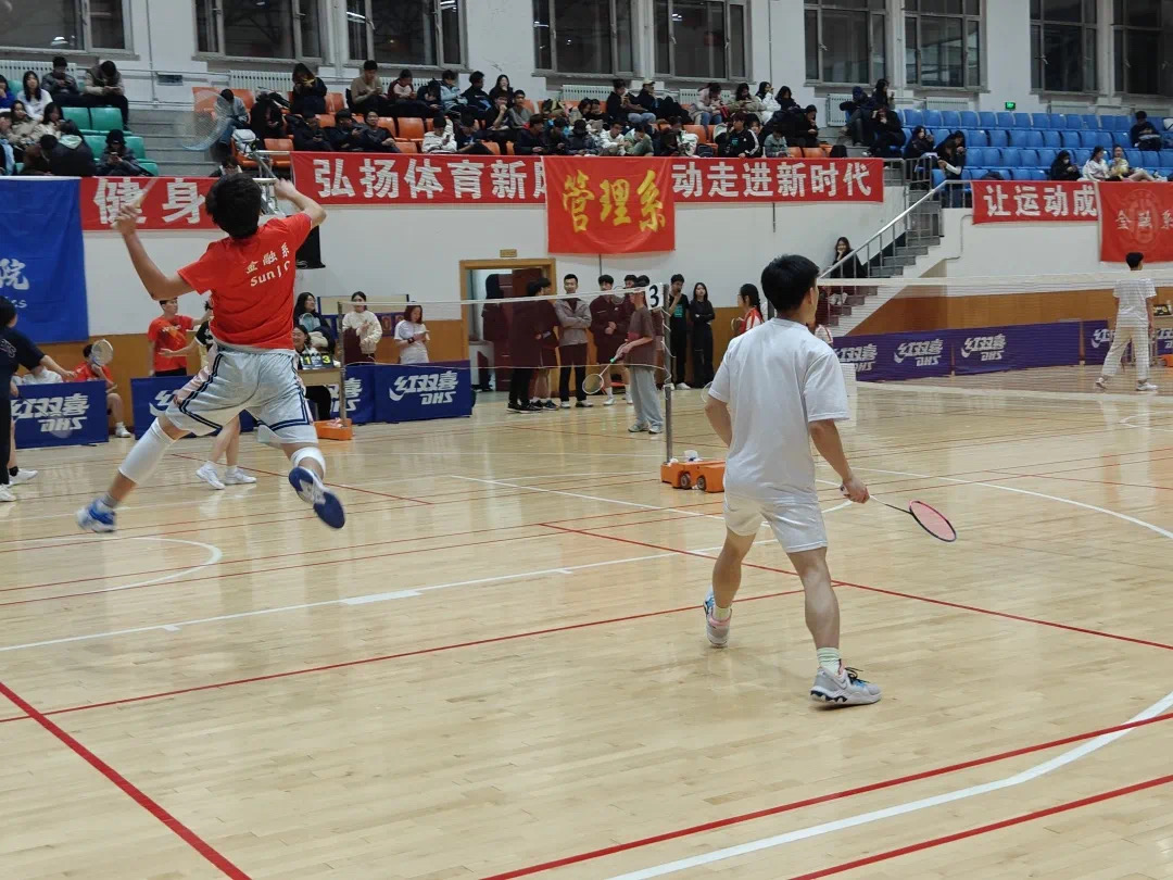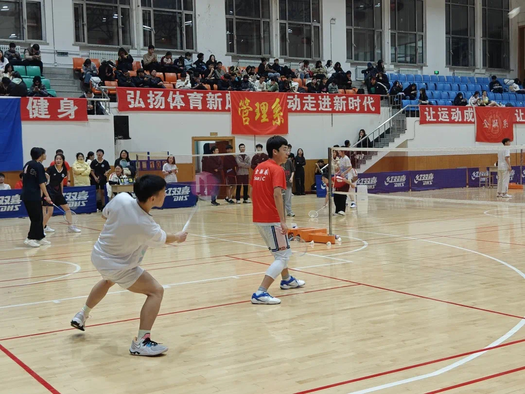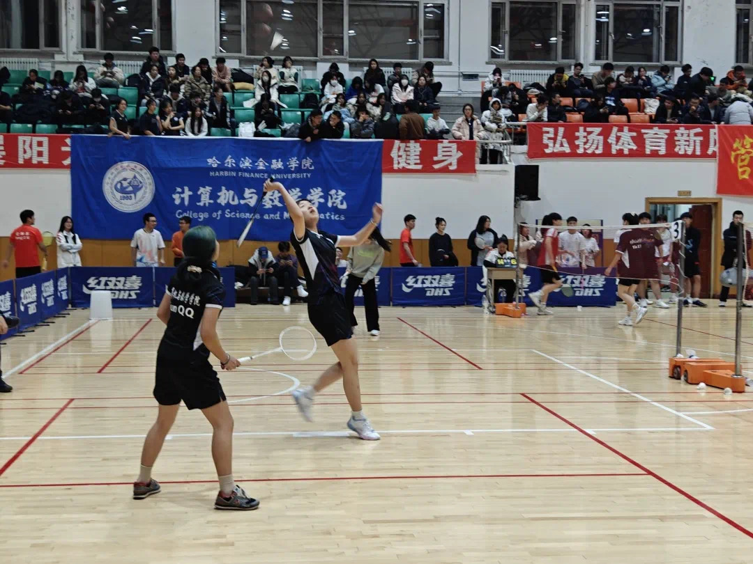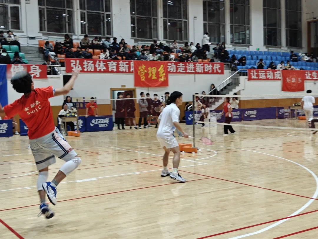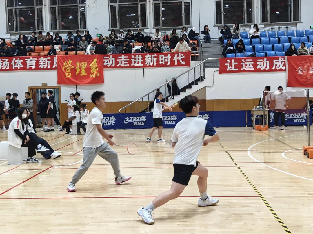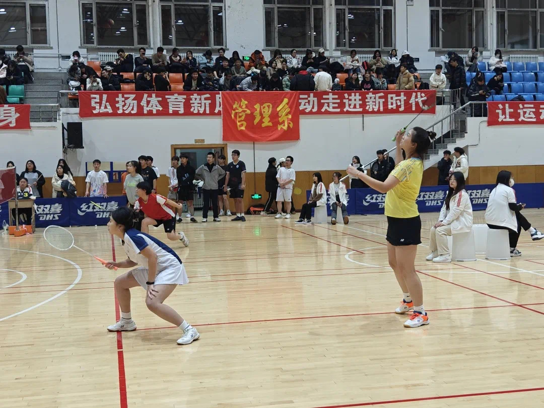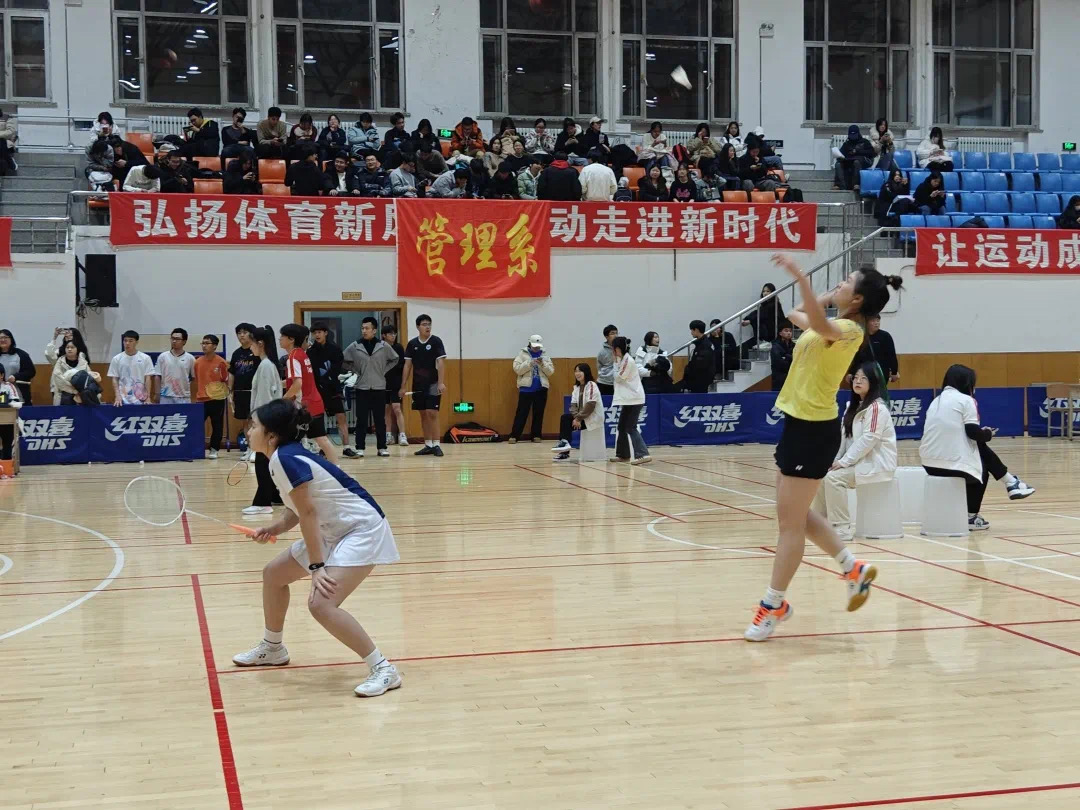 阳光体育竞赛—羽毛球比赛第三日于2023年11月27日下午5点30分在第二体育馆羽毛球馆激烈进行。体育教研部副主任路秋莉以及球类教研室主任黄锐、竞赛秘书张莹莹莅临指导。
