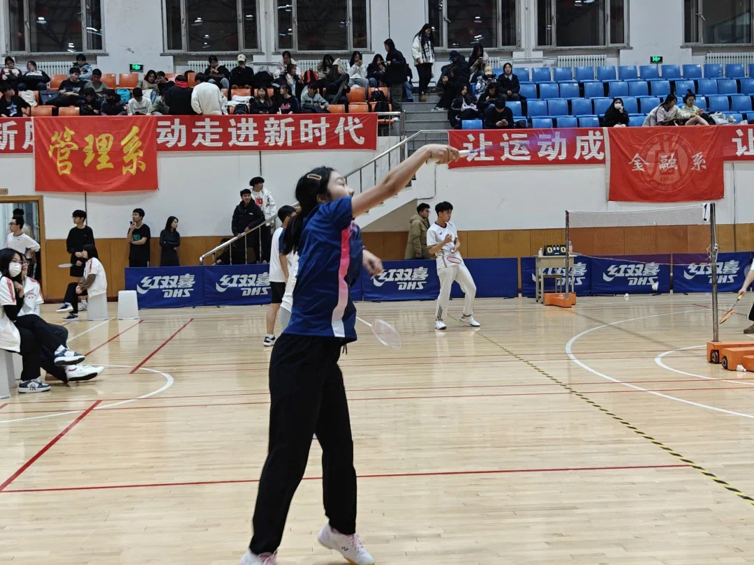 “羽”你同行,共向未来,激扬梦想,“羽”动青春。羽毛球场上闪耀着参赛选手们青春的活力,挥洒着激情的汗水,锻造强健体魄,增强身体素质。这是一场酣畅淋漓的比赛,也是一场关于智慧的博弈。一支球拍一个球,球拍拍出的是青春,心中深藏的是金院学子对羽毛球的热爱。