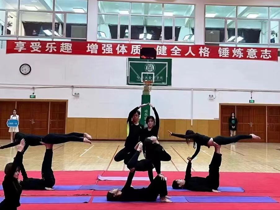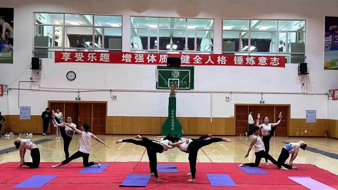 2023年11月8日下午,哈尔滨金融学院2023年“阳光体育”竞赛—健身瑜伽比赛在第二体育馆成功举办。体育教研部直属党支部副书记杨国红、副主任路秋莉、艺术舞蹈教研室教师翟金英、王晶、民传劳育教研室教师陈莉、陈洪坐莅临现场指导。