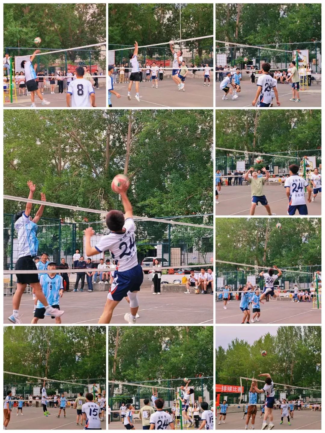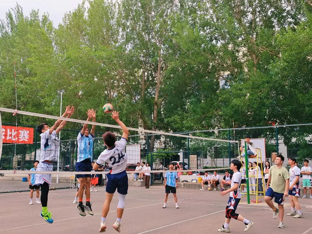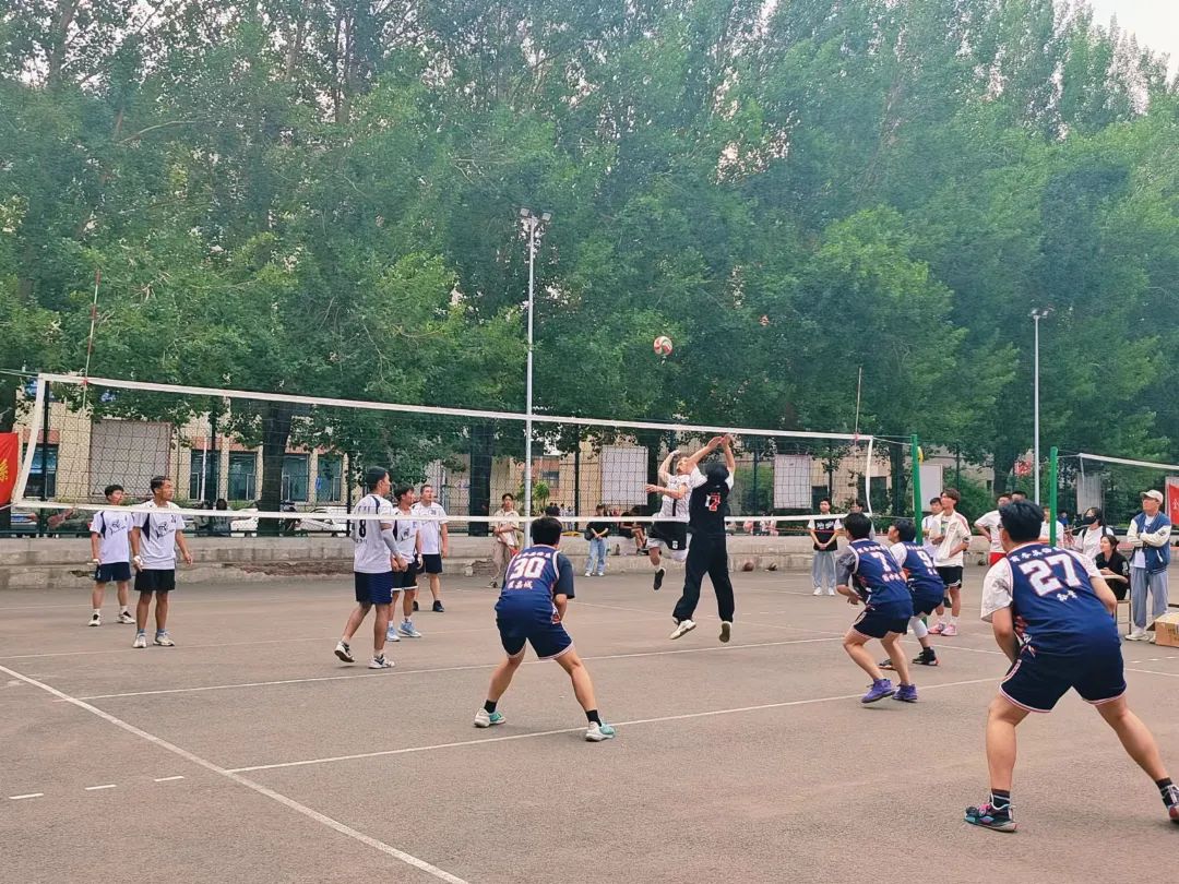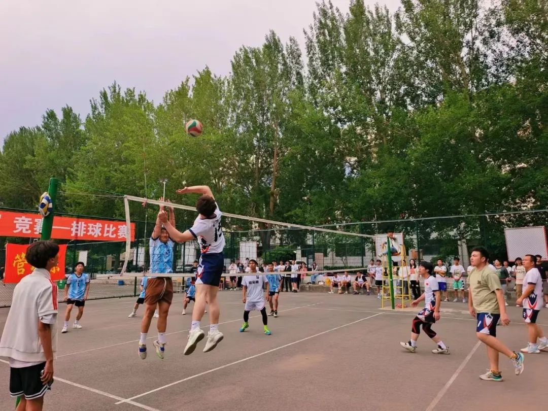 第一局比赛刚开始,徐徐的微风给比赛增添了很多不确定性,双方球员手感不佳,此时管二队长扛起大旗,在二传的配合下原地起跳调整进攻,排球应声落地,打出漂亮的副攻快攻。商英紧咬比分,抓住管二的防守空挡多次调整得分,在最后一球时,管二抓住机会,拿下第二个赛点以26:24拿下第一局。第二局,管二球权,天公似乎很看好本次比赛,第二局比赛也没有了风的干扰,队员们尽情发挥,拿出最好的状态应对对手。管二球员率先找到状态,以拦网得分,拉开差距,商英球员最进攻却难以达到理想的效果,最终管二以25:17拿下第二局。大比分2:0