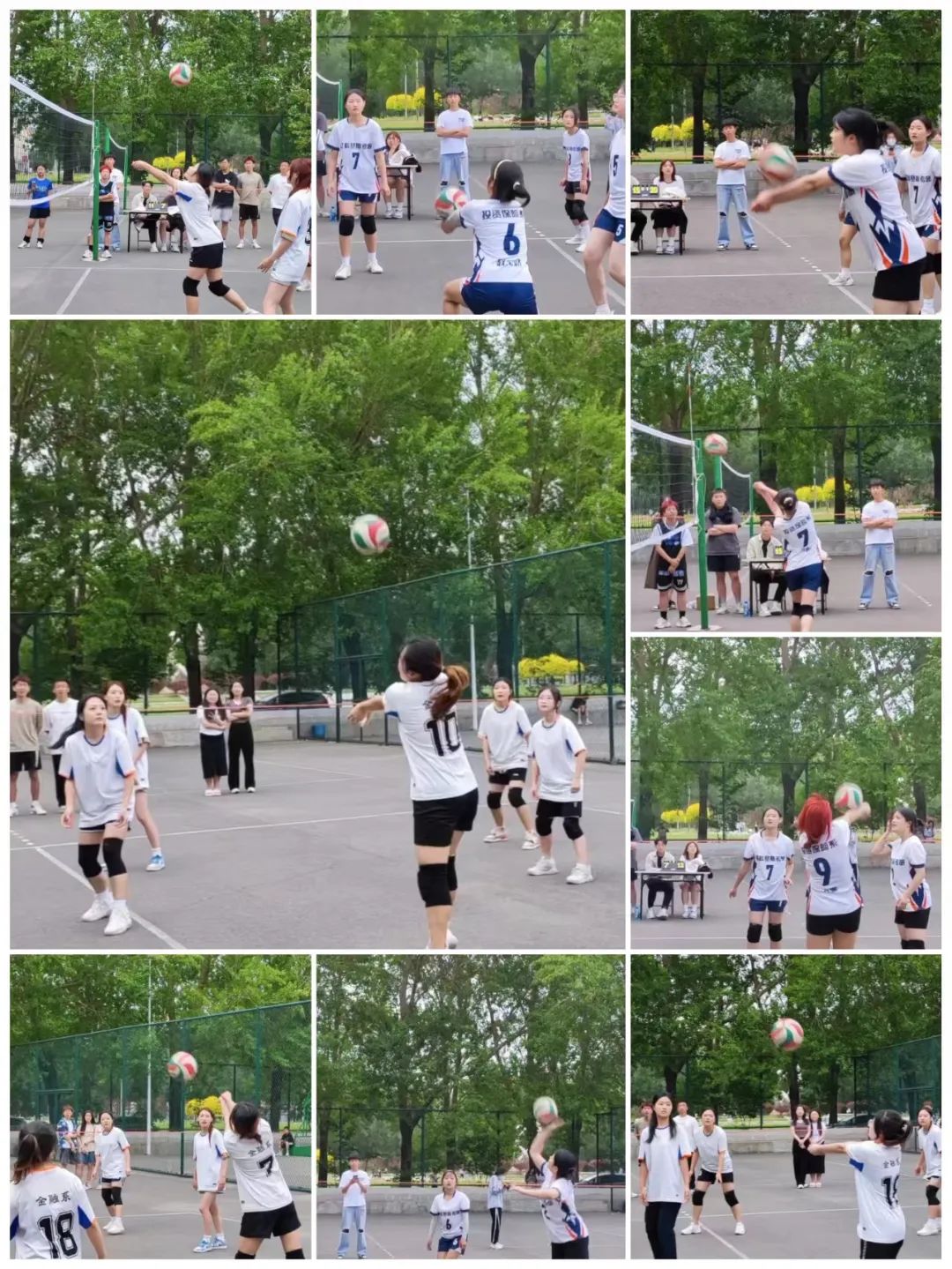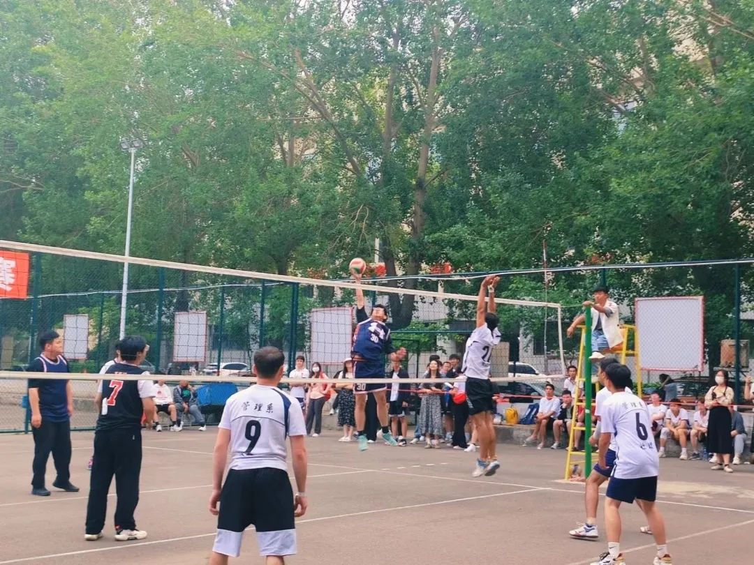 第一局,管一率先组织进攻,但效果并不理想,被金融一队防守下来,双方有来有回始终拉不开比分,但此时管一接应发出高质量下旋球,金一堪堪防守,将排球送过球网,管一二传抓住前排进攻机会,起跳探头扣球得分,打开局面,由此管一以25:10拿下第一局的胜利。第二局开始,金一轮换发球,当副攻手走到前排的同时,用最擅长的拦网应对管一的进攻,几个漂亮的防守反击一度领先。管一不甘示弱,改变策略,用掉球突破防守,最终以26:24拿下第二局。大比分0:2