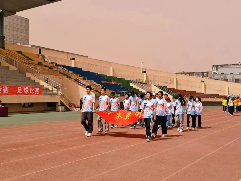 竞技绿茵场,追逐足球梦。为进一步推动阳光体育运动的蓬勃发展,丰富学生校园文化体育生活,营造良好的校园足球氛围,增强学生身体素质和足球竞技水平,促进学生健康快乐成长,使更多的同学感受到足球的魅力,4月20日中午,阳光体育足球比赛开幕式在新体举行,体育教研部群体竞赛和体质测试中心主任冯涛老师、大学生体育协会指导教师张莹莹老师出席本次开幕式。