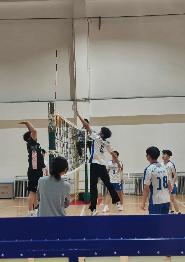 随着哨声划破长空,男子组率先展开较量。每一次救球都是对体能与意志的极限挑战,队员们鱼跃翻滚、飞身扑救,汗水浸透衣衫却始终紧盯来球。双方比分胶着攀升,扣杀声、拦网声与观众的呐喊声交织成青春的交响。女子组的对决同样扣人心弦。队员们默契的配合和细腻的技巧掌控节奏展现出巾帼不让须眉的气魄。赛场上,每一次球的轨迹都是智慧与力量的博弈,每一次得分都凝聚着团队的信任与协作。