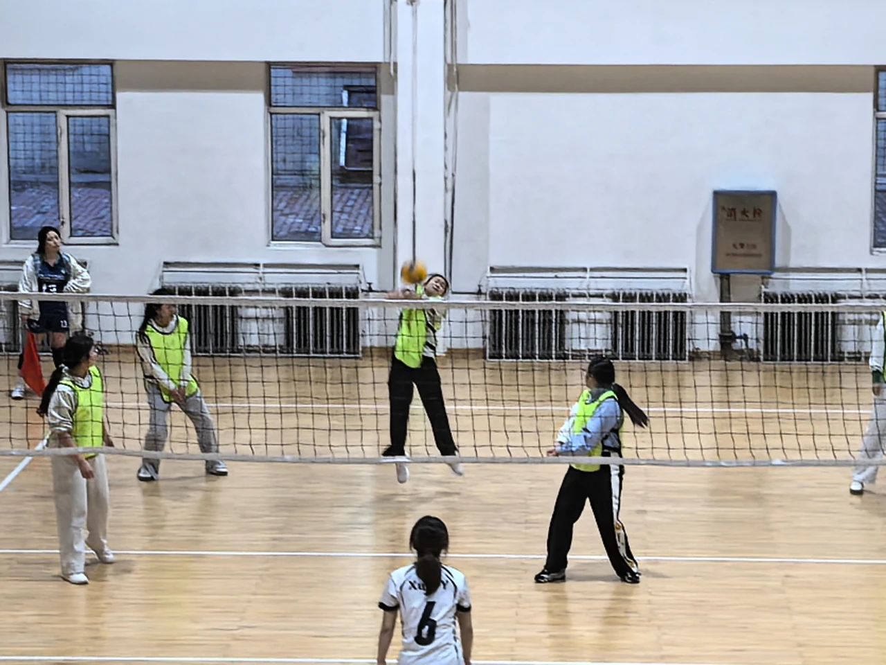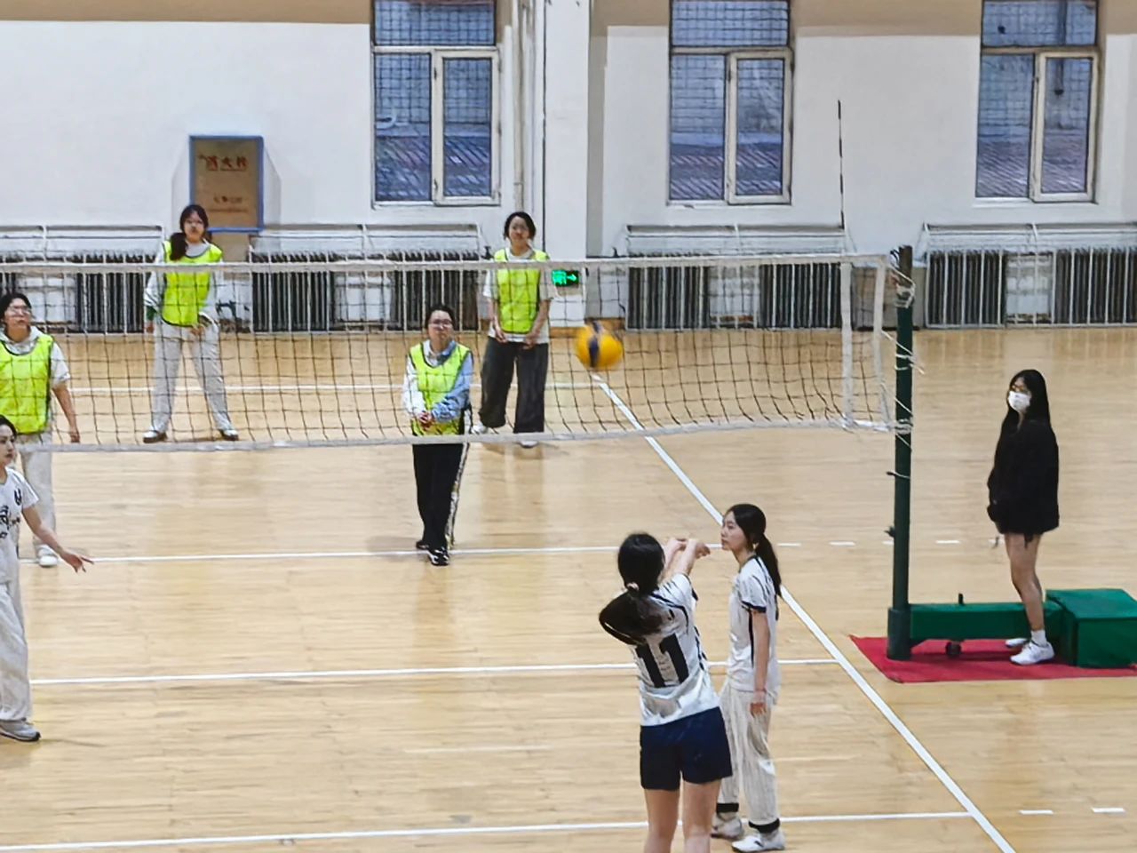 随着裁判员清脆的哨声响彻排球场,男子组比赛率先点燃战火。管理一队凭借强势的发球和默契的拦网迅速建立优势,每一次重扣都带着破竹之势。会计二队也奋力防守,鱼跃救球的身影在底线频繁闪现。