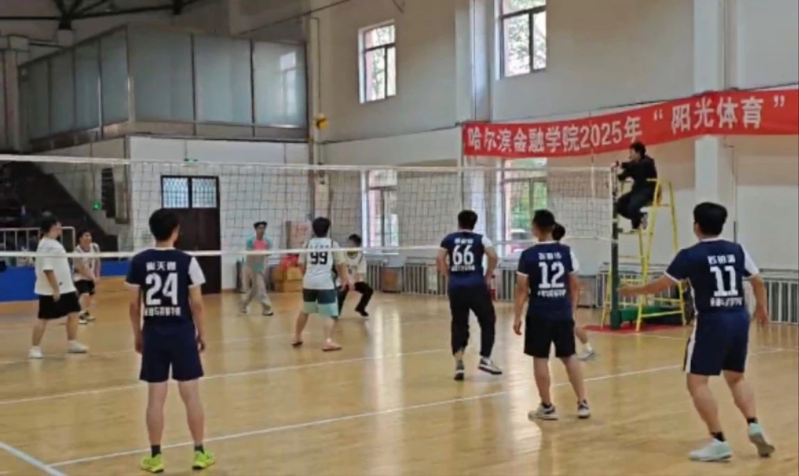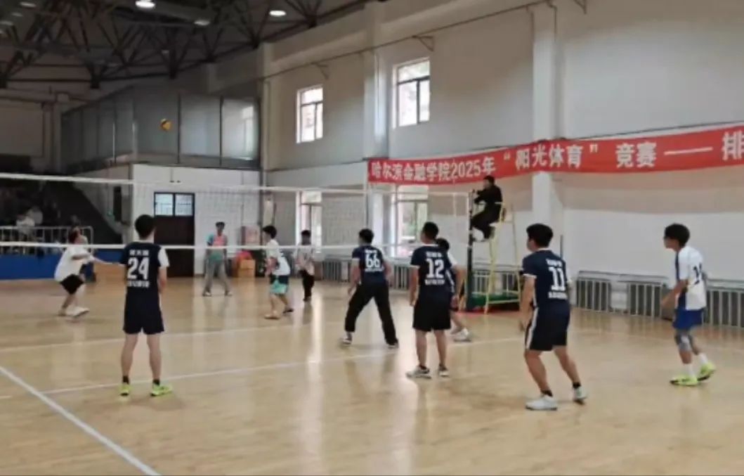本次比赛分为男子组和女子组两个赛程。随着裁判组的哨声响起,男子组比赛开始了。队员们迅速进入状态,比赛现场气氛热烈,他们精神抖擞、斗志昂扬。在发球环节,金融一队的选手们或采用大力跳发,以势大力沉的发球直接冲击对方防线;或巧妙运用飘球,让球的飞行路线飘忽不定,令对手难以捉摸。接球时,文法队的队员们迅速移动,精准地将球垫起,为球队的反攻创造机会。传球过程中,二传手们凭借敏锐的观察力和出色的传球技巧,为攻手们传出一个个恰到好处的球,为进攻奠定基础。扣球瞬间,金融一队的攻手们高高跃起,在空中将全身力量集中于手臂,以雷霆万钧之势将球狠狠扣向对方场地。拦网时,文法队的队员们紧密配合,筑起一道坚固的屏障,试图阻挡对方的进攻,可还是防不胜防,最终,金融一队以2:0的佳绩胜出本次小组赛。