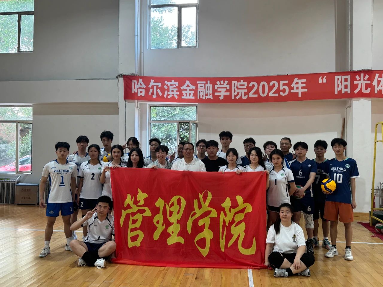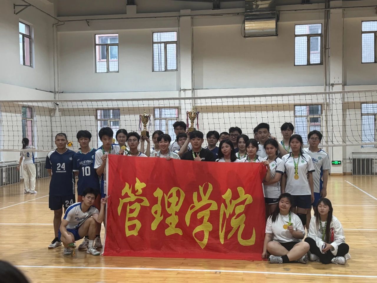 第一局比赛开始,双方势均力敌,不相上下。金融一凭借着出色的战术配合迅速进入比赛状态,多次以巧妙的发球技术破坏对面的一传。管理及时调整战术,加强了发球稳定性,在管理持续猛攻下,拿下第一局比赛胜利。第二局比赛开始,管理二的状态神勇,开局通过大力发球,连得四分。金融不甘示弱,迅速调整战术,通过队友默契配合将比分拉平。管理二叫暂停,暂停奏效。二传多次给主攻手传球,主攻手多次以漂亮的扣球拿下比分。最终管理二获得决赛胜利!