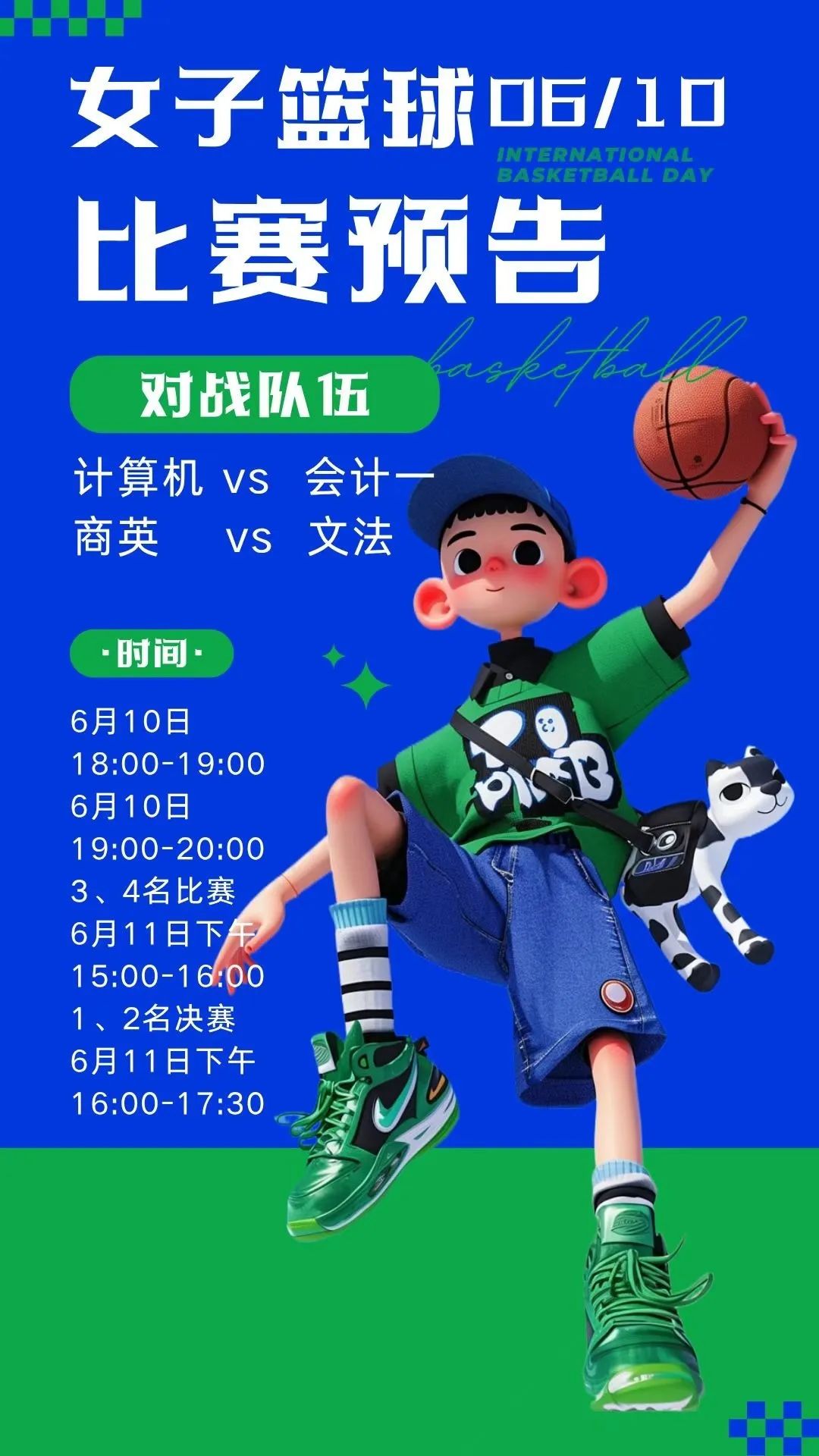 无论你是各个学院的球队铁杆粉丝,亦或是热爱篮球的热血青年,都千万不要错过这场精彩绝伦的比赛!这场万众瞩目的决赛将于下周三开场,让我们齐聚第一体育场篮球馆,共同见证这场篮球巅峰对决,为我们喜爱的球员呐喊助威!