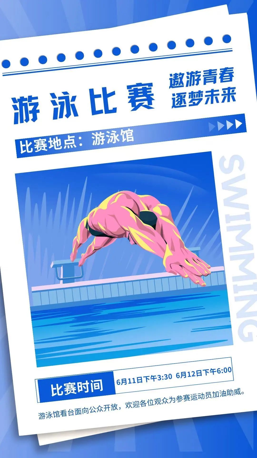 碧波激荡燃夏日,泳往直前展锋芒!当炎炎烈日遇上水花飞扬,2025年阳光体育竞赛——游泳比赛即将拉开帷幕,将于6月11日下午3:30在校游泳馆震撼开启!