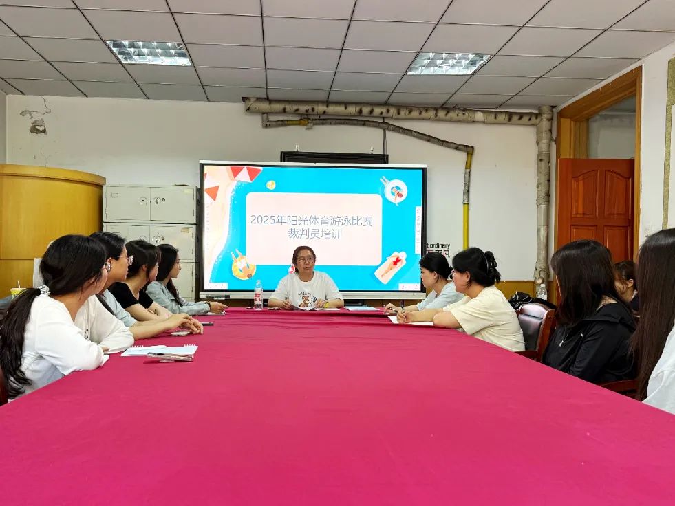 为保障阳光体育游泳比赛顺利开展,本次比赛的裁判长,褚宇鹍老师组织学生裁判员开展了系统的培训。培训中,褚老师详细讲解了游泳比赛规则、裁判法、裁判职责和游泳判罚案例,让学生们对裁判工作有了全面认识。随后,对学生们进行了裁判分工,明确各自岗位任务。在现场实习环节,大家模拟比赛场景,从发令、计时到泳姿判定,反复实践,及时纠正操作中的不足。通过此次培训,学生裁判员们不仅掌握了专业的裁判技能,也增强了责任感,为即将到来的阳光体育游泳比赛提供有力保障,确保比赛公平公正、有序进行。