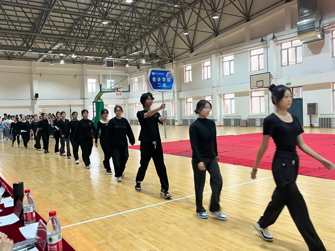 赛场上,各学院代表队缓步登场,以舒展的体式、匀净的呼吸晕染开场馆的静谧氛围。队员们身姿轻盈、体态舒展,将瑜伽的柔缓与力量相融,从流畅的体式过渡到静谧的冥想收尾,既展现了体式的精准美感,也传递出金院学子从容自洽的精神风貌。