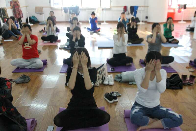 瑜伽,源自于古印度,是东方最古老的强身术之一。瑜伽修行者的大脑是延伸的,从足底一直到头顶,体式并不是指机械地摆出某个姿势,而是需要习练者不断的琢磨,最终达到动力与阻力之间的平衡。瑜伽不光可以修身养性改善个人情绪,还可以调节生理平衡,从而达到增强免疫力的效果。现在已成为人们修身养性方法之一,经常练习瑜伽能够改善人们生理、心理、情感和精神等方面的问题,是一种能达到身体、心灵与精神和谐统一的运动方式。活动开始大家一起随着音乐做冥想,接着做瑜伽体式练习,师生们伴着轻柔的音乐一起做各种瑜伽体式,尽力把每一个体式做到标准继而完美,一个星期的压力与疲倦都随着同学们的汗水一起蒸发了。大家在一起表演才艺、游戏互动、交流并品尝素食,在欢乐中释放自己,静下心来,享受生活。