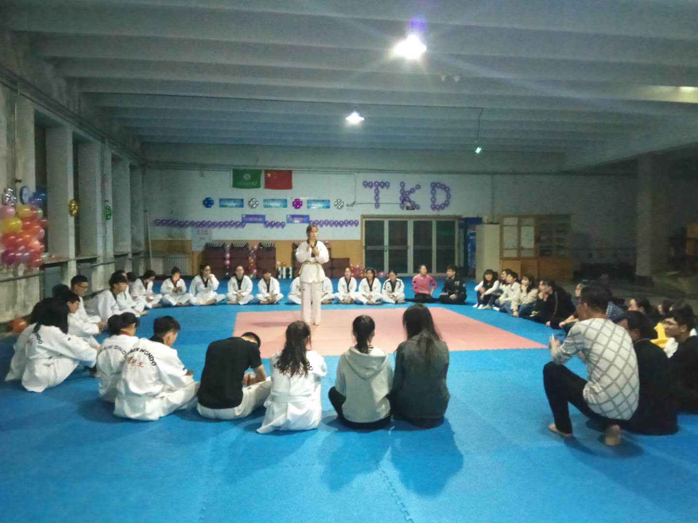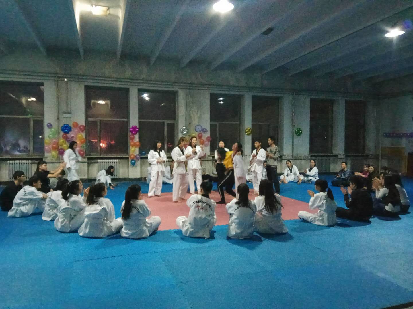 为丰富我校社团文化建设,促进各协会之间的交流沟通。大学生体育协会跆拳道协会、散打协会与武术协会于11月26日晚在第二食堂四楼举行联谊活动。本次联谊活动由跆拳道协会会长刘岩主持,三个协会会员参加。