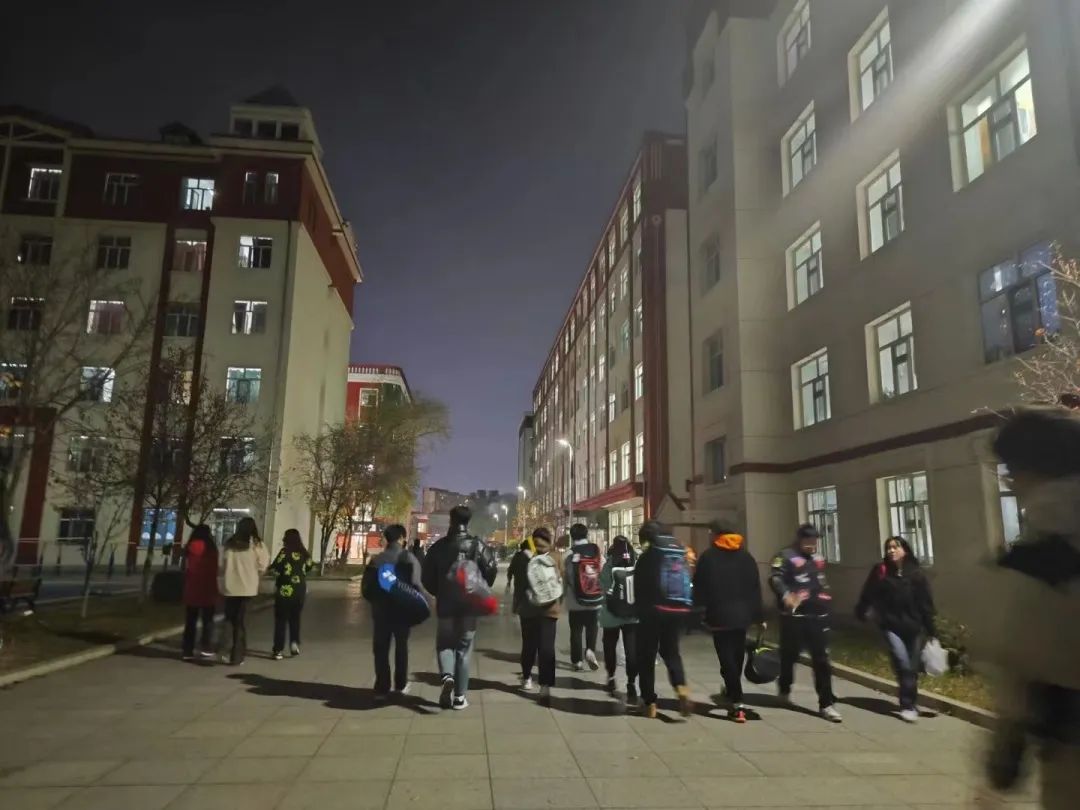 在联谊结束的路上,大家欢声笑语,有着许多话题,仰望天上的月亮也格外明亮。