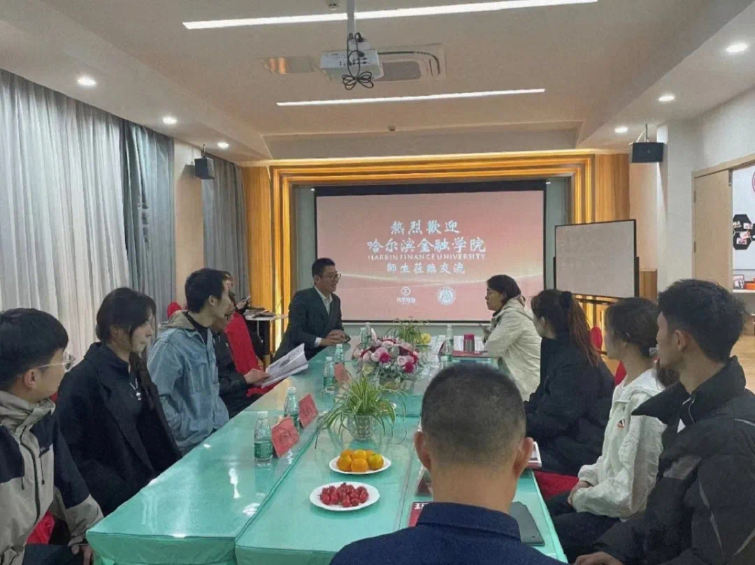玛尼瑜伽董事长陈怀一、公司“天网”负责人刘玉明总经理及部分员工与我院师生热烈交谈。