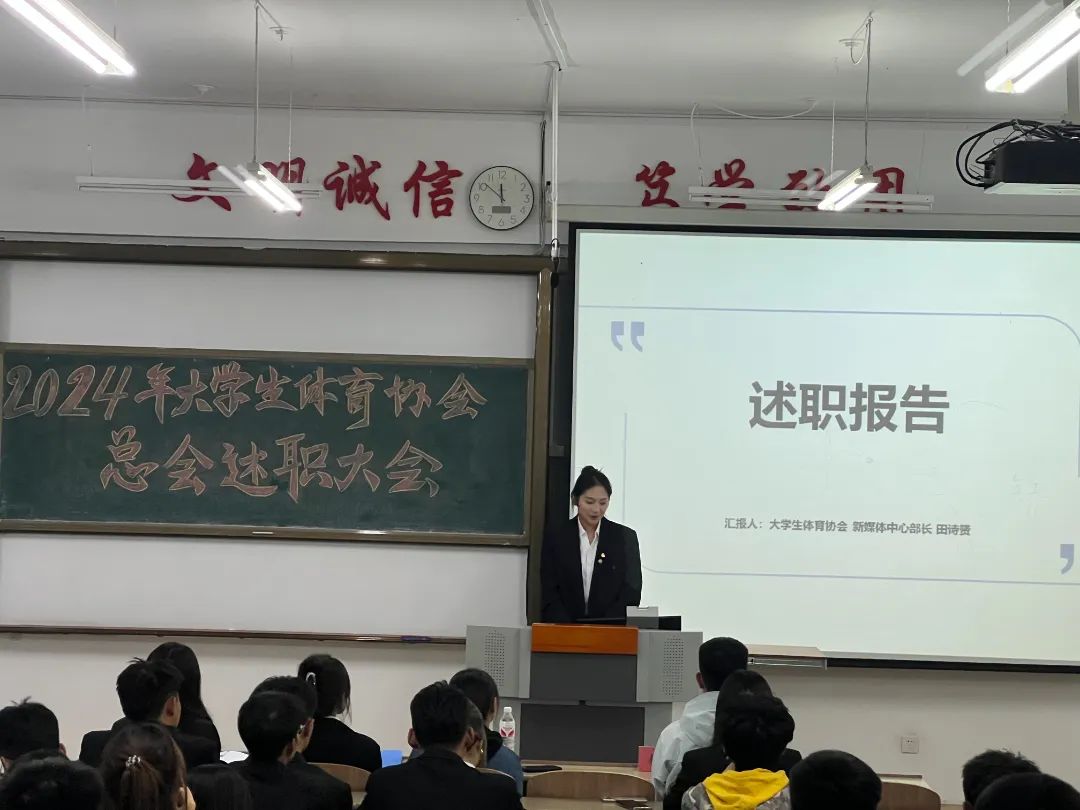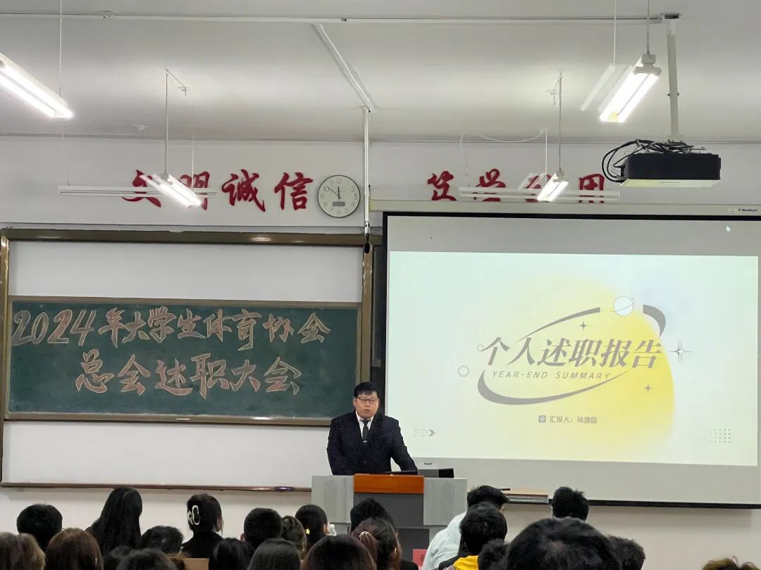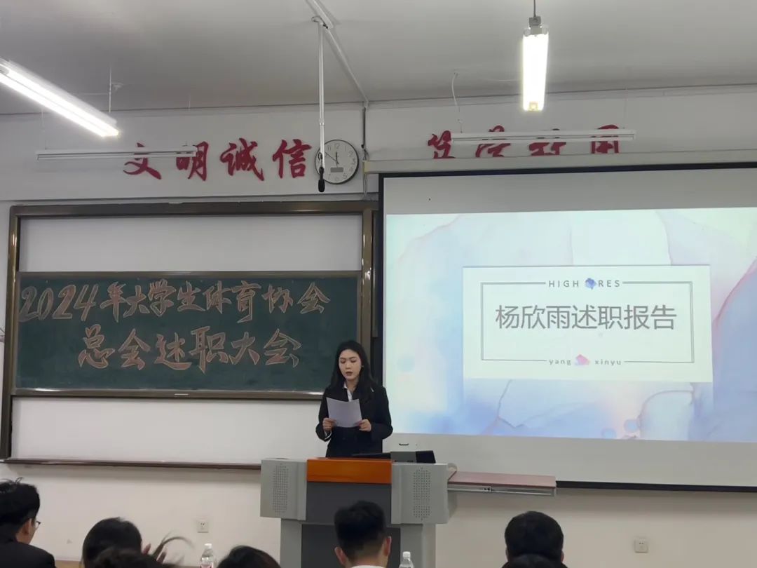 最后,由第18届大学生体育协会副主席兼秘书长杨欣雨对此次大会进行总结,他代表第十九届管理团队祝愿十八届管理团队所有成员离开体协大家庭后能够将大学生体育协会中培养出的那股锐意进取、勇攀高峰的体风,如同不灭的灯塔一般,照亮他们未来职业生涯的每一个角落。愿大家继续凝聚团队的力量,秉持工匠之心,无论身处何方,在自己的人生道路上书写新的成就与辉煌。也期望新一届管理团队在前辈奠定的坚实基础上,勇于探索,敢于创新,不断寻求工作上的新突破与新高度。要保持那份对体育事业的热爱与激情,面对挑战不退缩,遇到困难不气馁,持续保持高昂的斗志和旺盛的干劲。相信在大家的共同努力下,大学生体育协会这艘承载着梦想与希望的巨轮,定能乘风破浪!