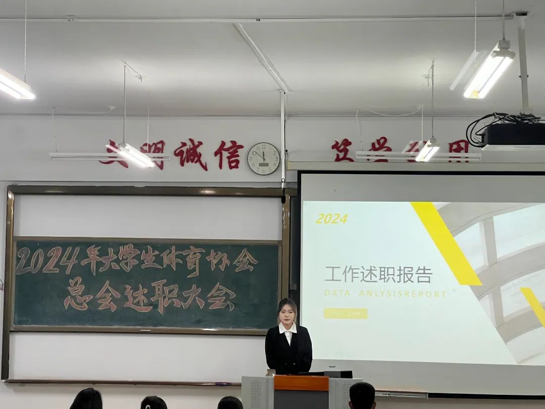 岁序更替,我们携手回望过往的足迹,为激励和引导大学生体育协会各总会健康、和谐、有序发展,切实提高总会的凝聚力与执行力,培养各学生干部的责任意识与担当精神,更好的推动管理团队之间的交流与发展,进一步规范干部管理制度,打造精简高效的干部队伍。根据《哈尔滨金融学院社团管理规定》和《大学生体育协会章程》,大学生体育协会于2024年10月11日下午5点30分,在新教举行了2024年大学生体育协会总会述职评议大会。出席本次大会的有大学生体育协会主管教师满雪莹、綦磊及第18届、第19届管理团队。本次会议由第18届大学生体育协会副主席兼秘书长杨欣雨主持。