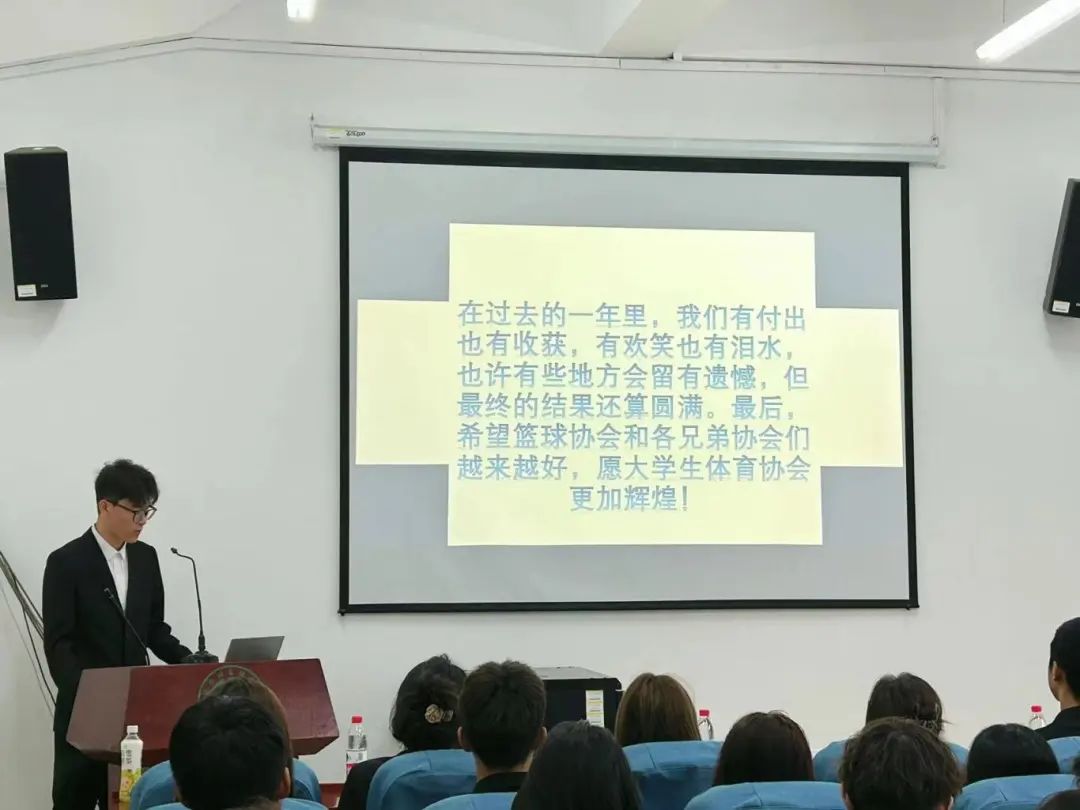 述职不仅仅是对工作的总结和反思,也是对学生干部的一种锻炼。至此,2024年大学生体育协会分会述职评议大会圆满结束。此次大会的顺利开展,是新老会长体协生涯的完美交接。回顾这一年的工作经历,大家有苦有乐,有汗水也有收获,但演出终将落幕,我在此祝福大家在接下来的大学生涯中不忘初心,砥砺前行,无论你们前行多远,大学生体育协会都会在原地守望。也希望新任会长能够接过接力棒,在新的起跑线上共同努力,携手创造大学生体育协会新的辉煌!