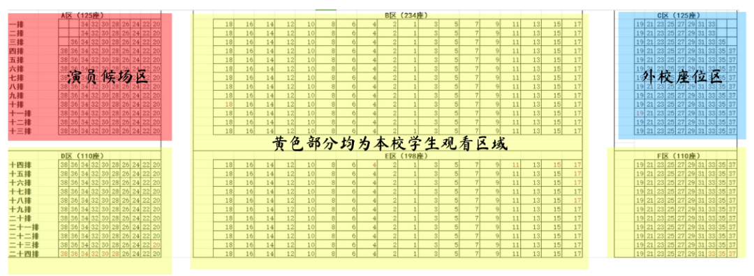 除演员候场区和外校座位区