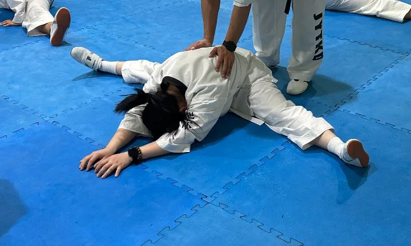 在付老师的带领下,我们从“腿法分解”到“连贯发力”,