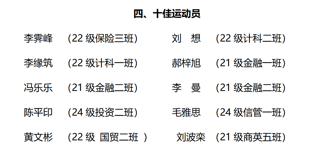 哈尔滨金融学院2024年“阳光体育”运动表彰名单