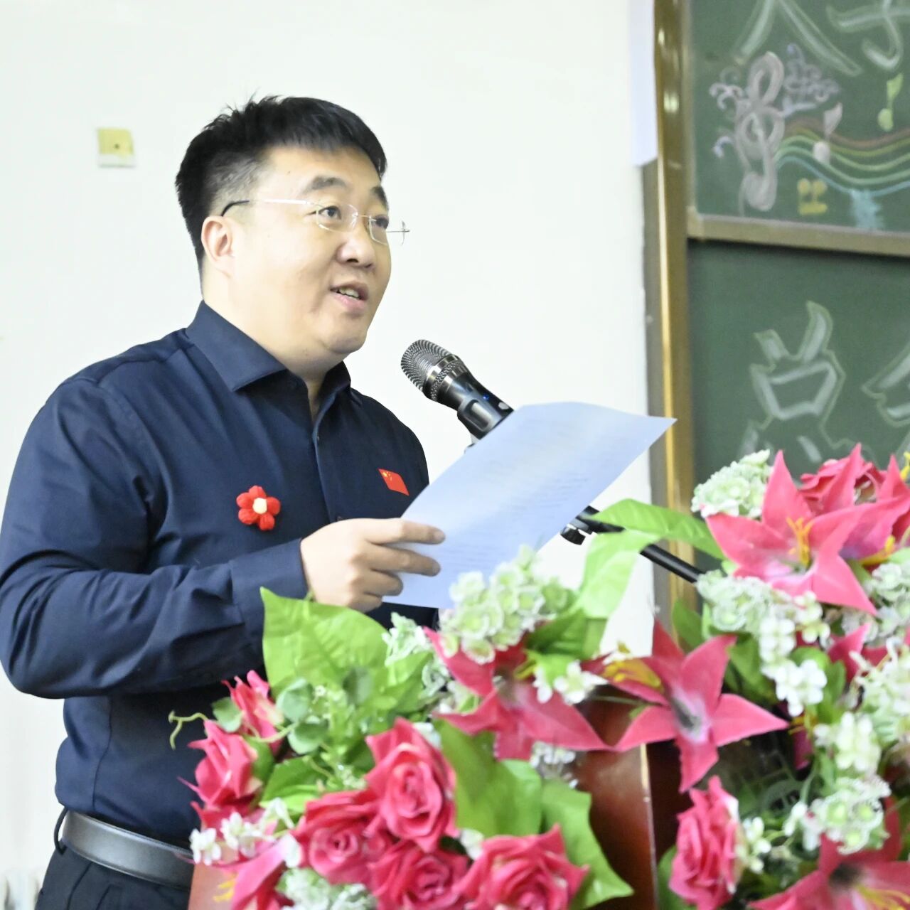 会议流程第四项由綦磊老师介绍到场领导与老师。