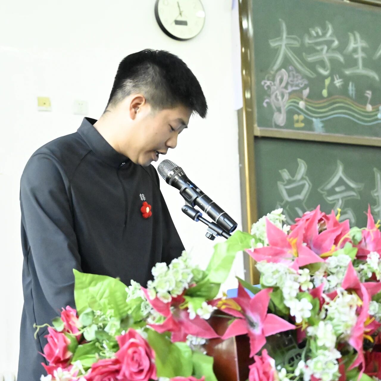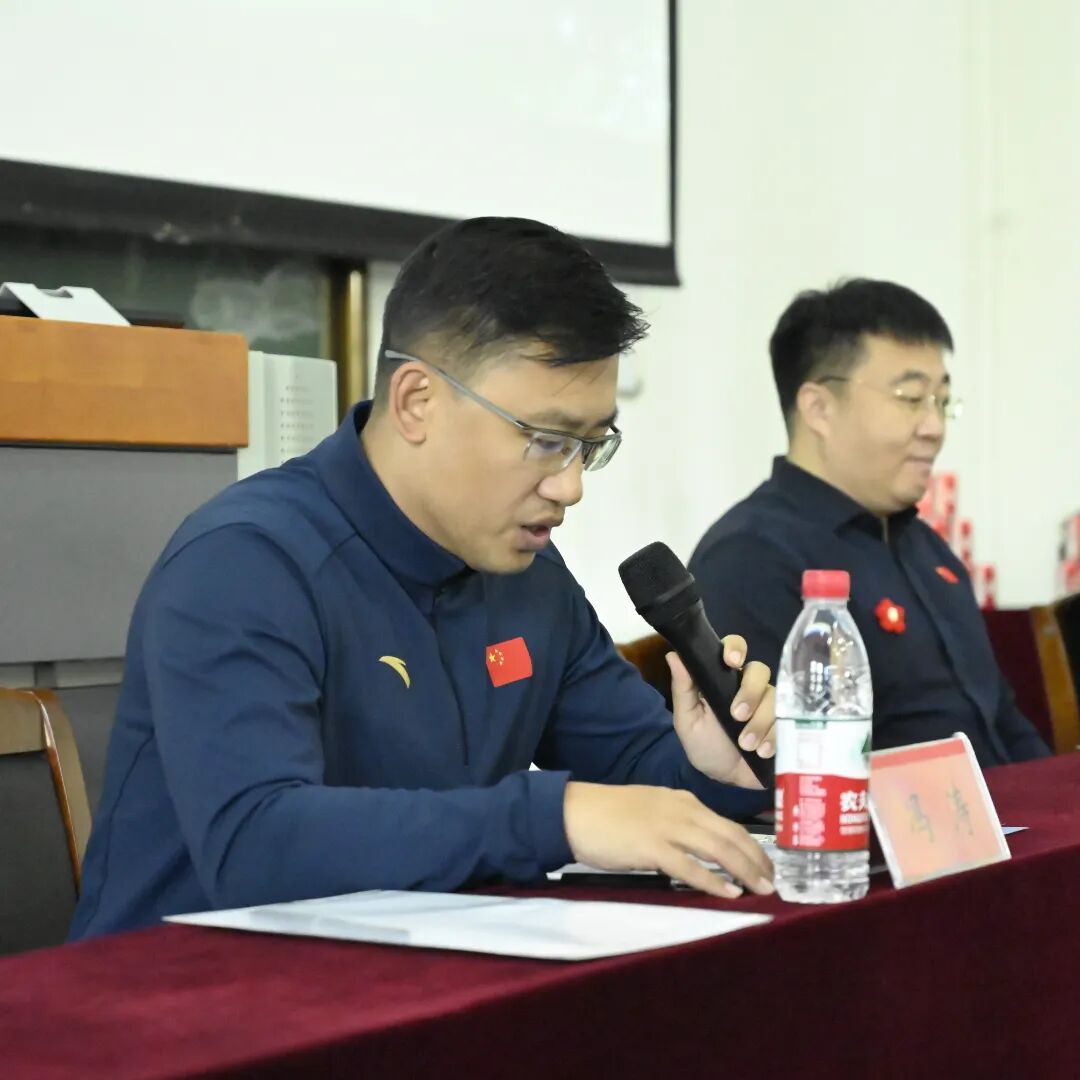 会议流程第八项由第十九届管理团队代表王玉昊同学发言,他表示“作为上届成员,感谢大家过往的支持与付出,这三年熔铸成我大学记忆中最闪亮的勋章。新届成员接过接力棒,愿你们守护初心、勇敢创新、追求卓越要有胸怀格局,凝聚协会力量,让大学生体育协会更加灿烂辉煌,让体育精神在校园持续闪耀!
