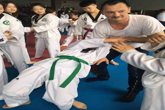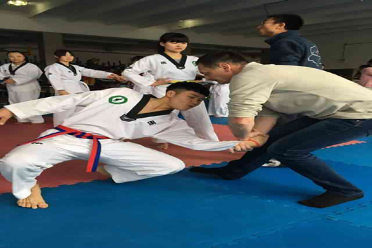 俄罗斯辛非罗波利国立大学外教卡拉维尼奇到我院跆拳道协会授课