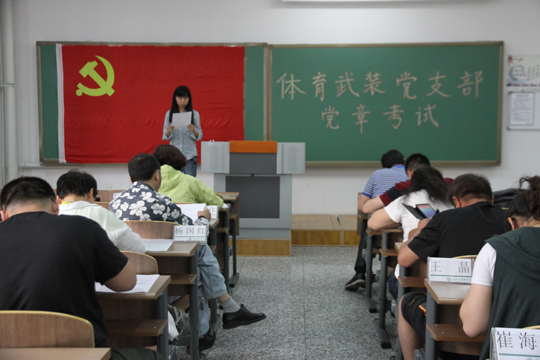 为进一步强化党员的党章意识,根据学院要求,按照我部“两学一做”学习教育实施方案安排,5月25日下午15点30分 ,体育教研部组织全体党员在新教115室进行《中国共产党党章》考试。