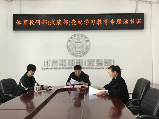 4月24日上午,体育教研部(武装部)召开党纪学习教育专题读书班开班式。主任(书记)、部长许宁主持开班式并讲话,副主任杨国红、路秋莉参加开班式。