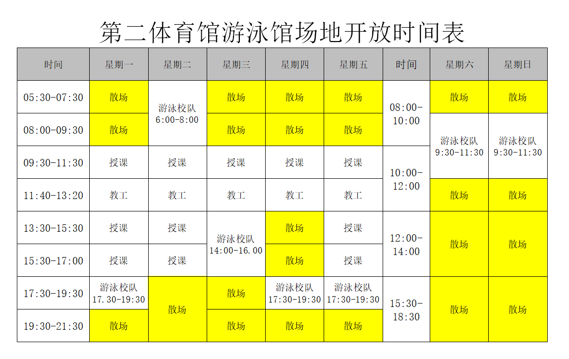 2024年度春季学期游泳馆开放时间表